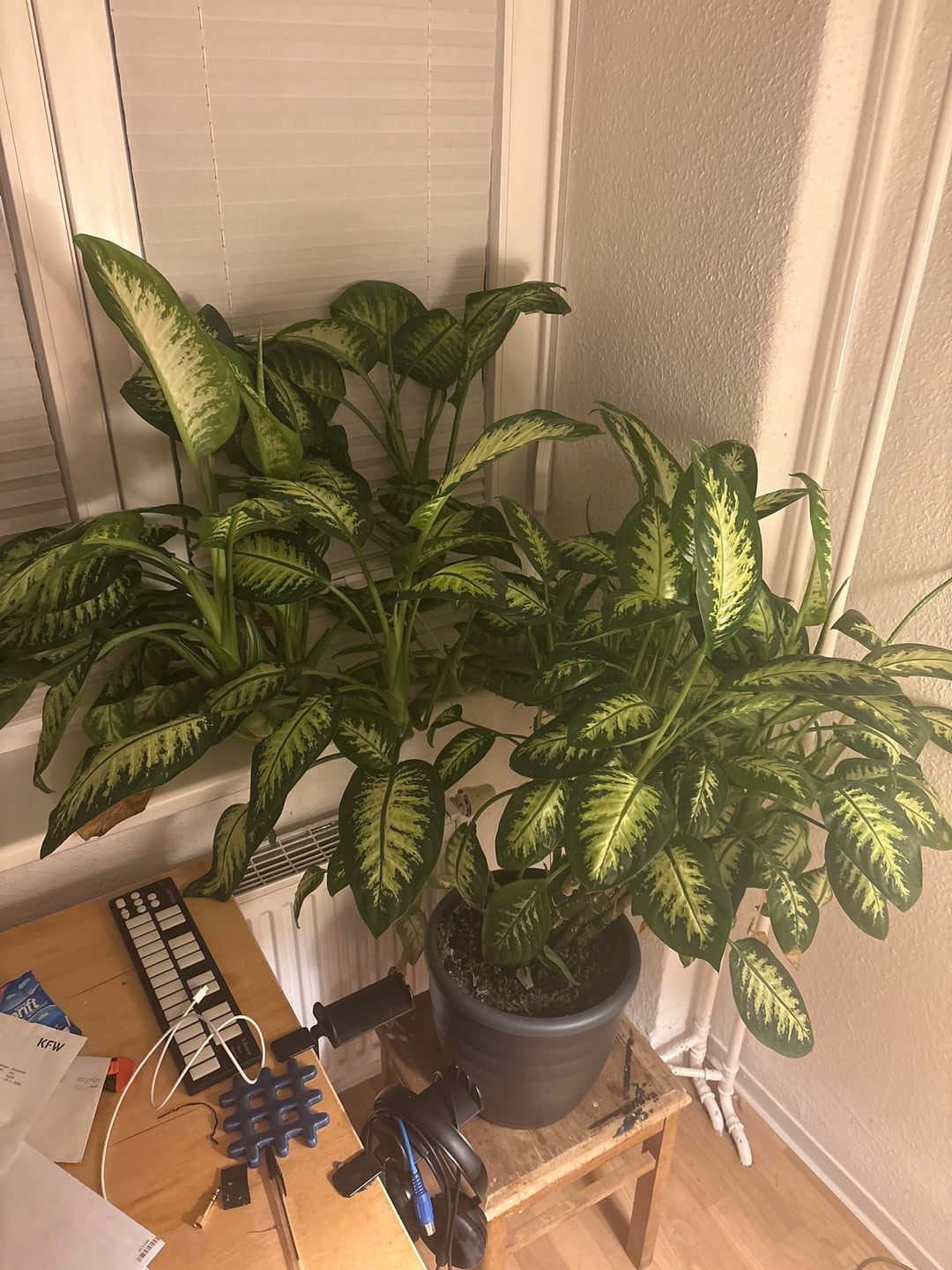 あまり向きなど気にせず育ててきたのですが、今はそのまま立てて置いているので、この春には植え替えをしたいと思っています。 植え替える時は若い子たちから離したほうがいいのか、それともこのままのほうがいいのでしょうか?また、茎を短く切ることはできますか? それとも害はありますか?アドバイスも大歓迎です☺️