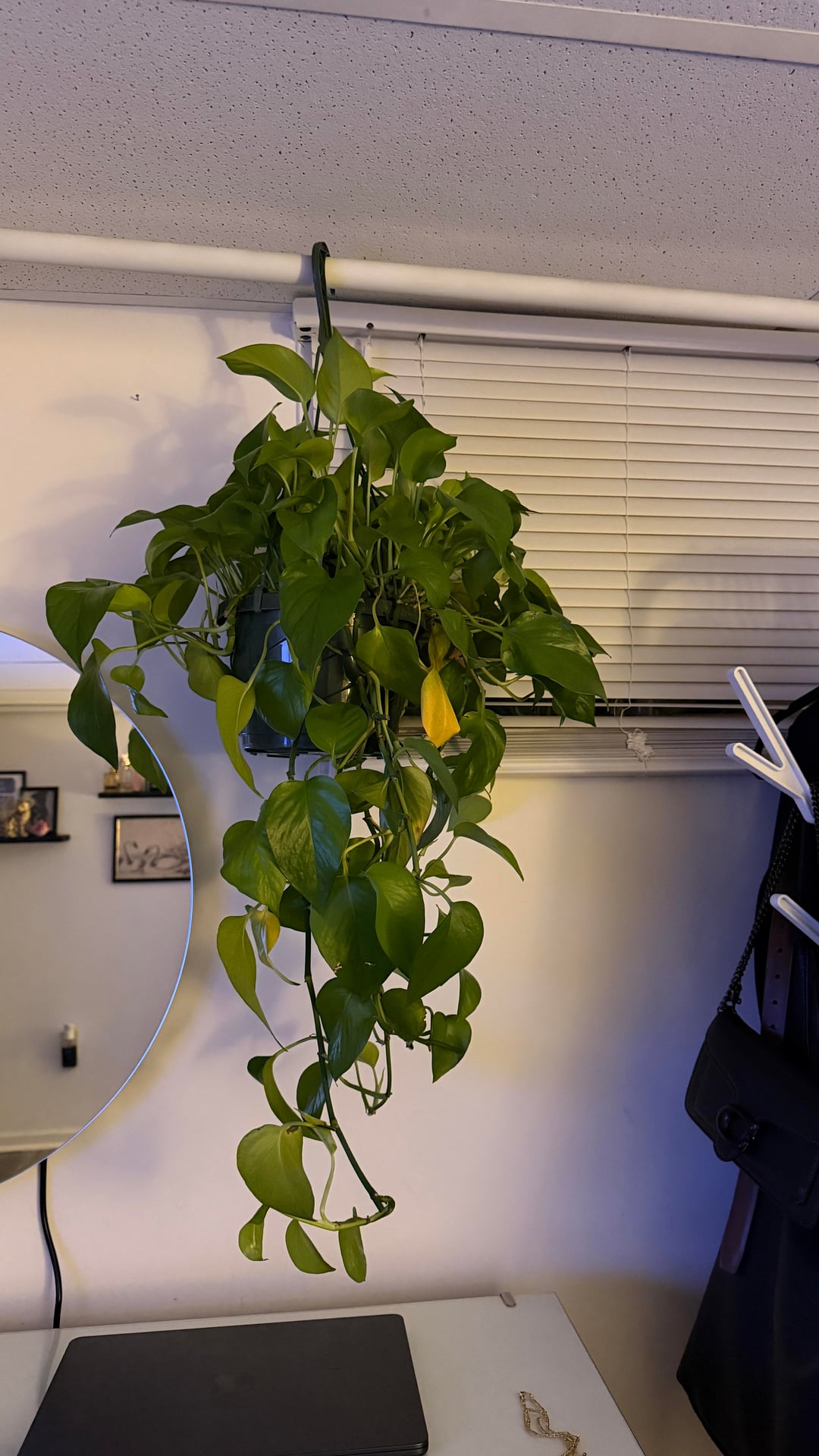最近新しいポトスを手に入れたのですが、とても悲しそうな顔をしています。何かヒントはありますか?私は彼女を太陽は当たらないが光がたくさん当たる窓の隣に置いています。