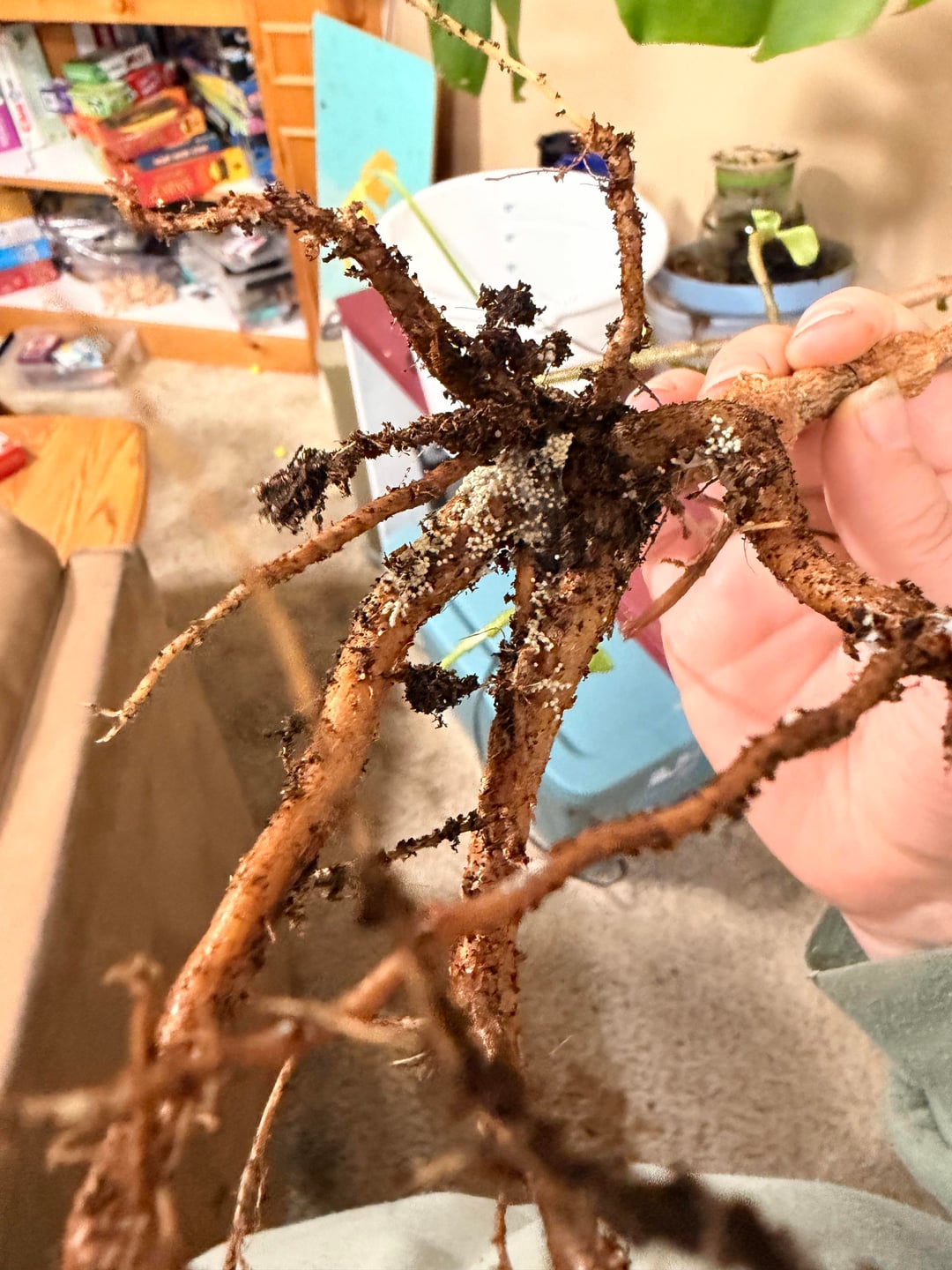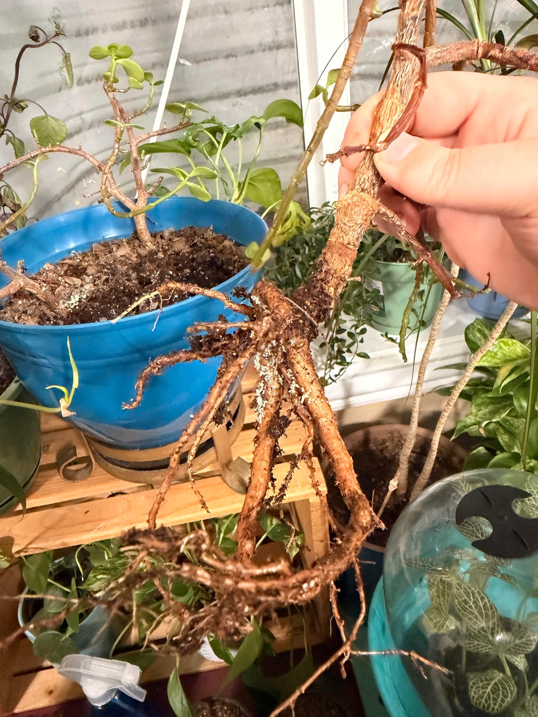 3番目のスイスモンスターは元気に育っているようですが、葉が落ち続けているのでわかりません。以前は透明なドームの中に入れていましたが、大きくなりすぎたので取り外さなければなりませんでした。もっと湿気の多い場所に置いたほうがいいでしょうか?根の状態も良く、根詰まりもありません。