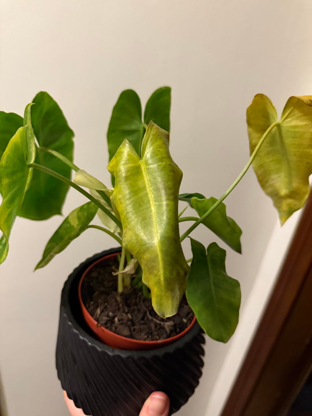 クリスマスプレゼントとしてもらったので、数週間しか保管していませんでした。最後の2枚の写真は葉が黄色くなっています。新しい成長も良さそうです。東向きの窓から数フィートのところに置き、ほとんどが間接光です。毎日ローテーションしてます!