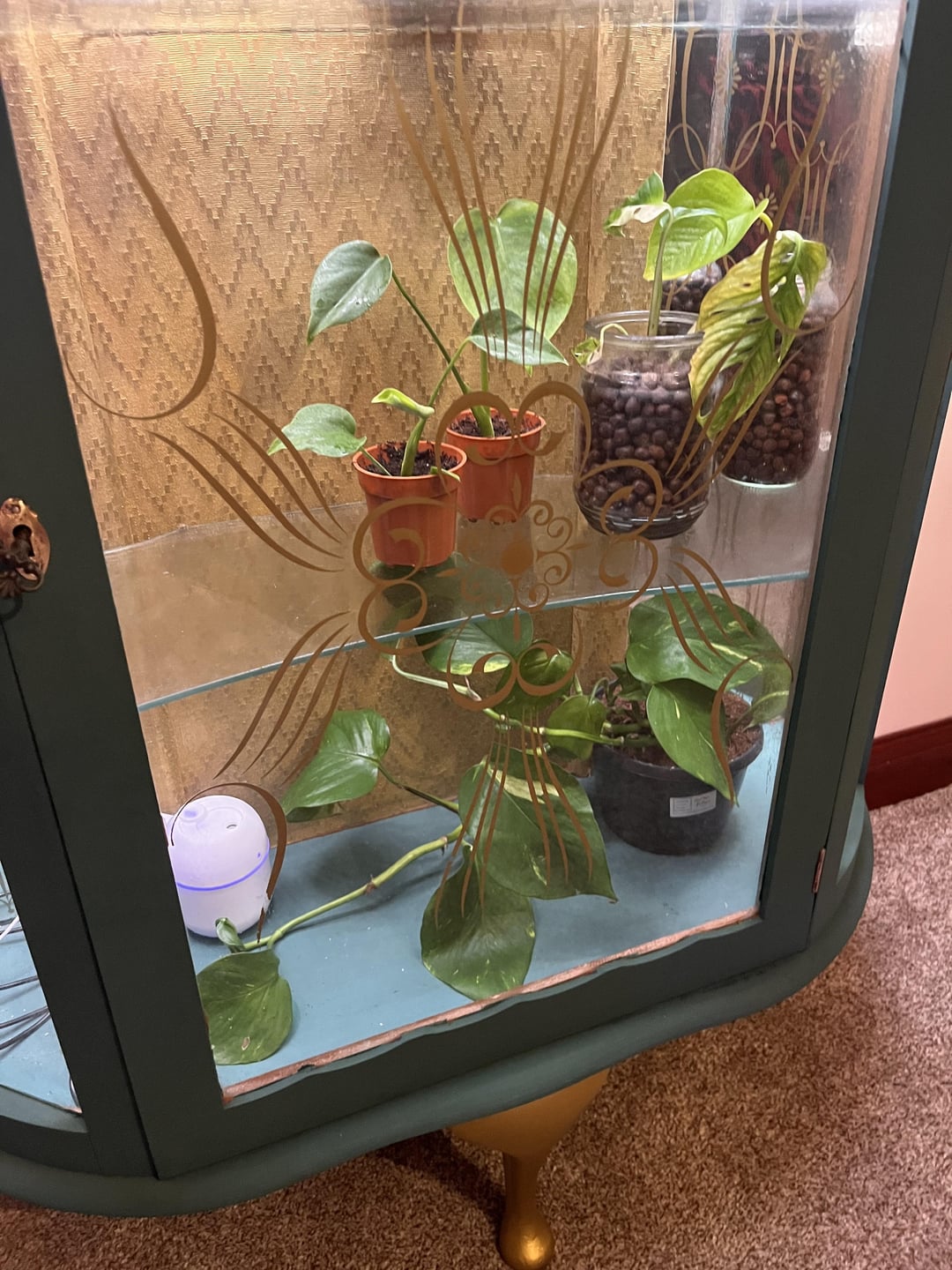 午後は5ポンドで買った陶器のキャビネットをアップサイクルして植物キャビネットに変えました。もっと植物が必要になりました。