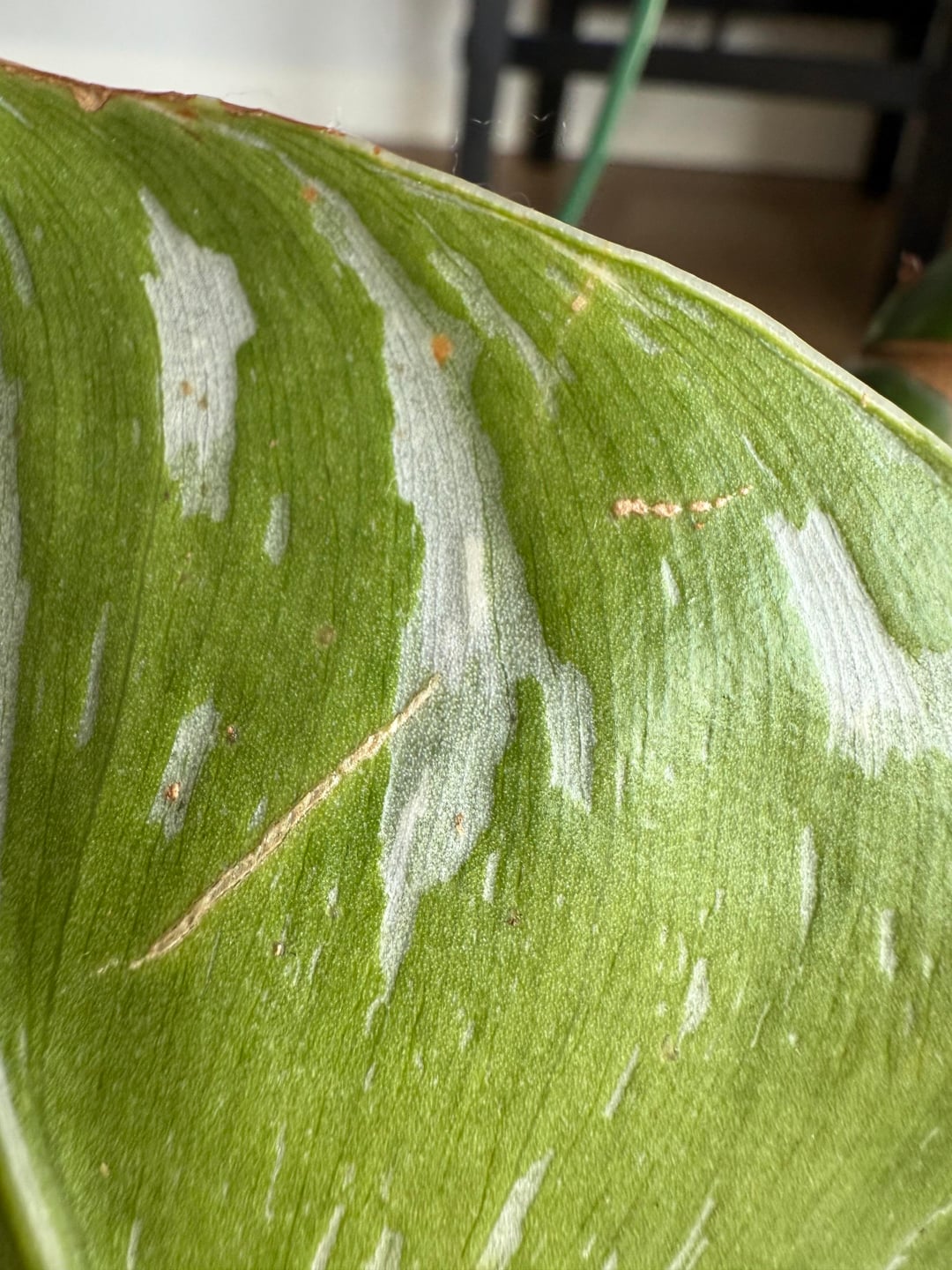 いくつかの植物に茶色の線が剥がれ落ちているのを見つけました。アザミウマまたはカイガラムシの被害?それとも心配する必要のない何かでしょうか?