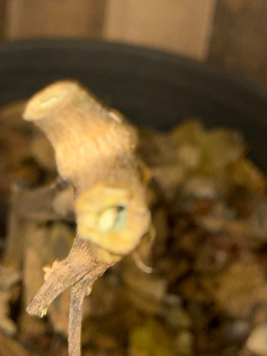 昨シーズン大成功したナスを地下室で越冬させようとしています。私は雪が降るオハイオ州南部に住んでいます。外で越冬しようとしたのですが、初雪の時に毛布をかぶせたら葉が枯れてしまいました。私は剪定し、鉢植えにし、地下室に置くことでそれを保存しようとしました。今はシーズンの半分くらいですが、まだ生きているかどうかわかりません。茎には緑色の芯があるように見えますが、周囲の茎はもろくて茶色です。寒さをしのぐのに遅すぎたのではないかと思いますが、情報を求めています。