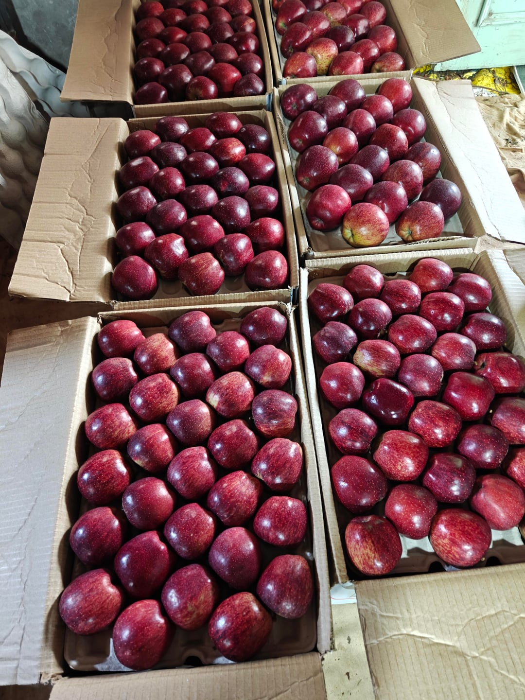 その年のリンゴの苗木と農産物。