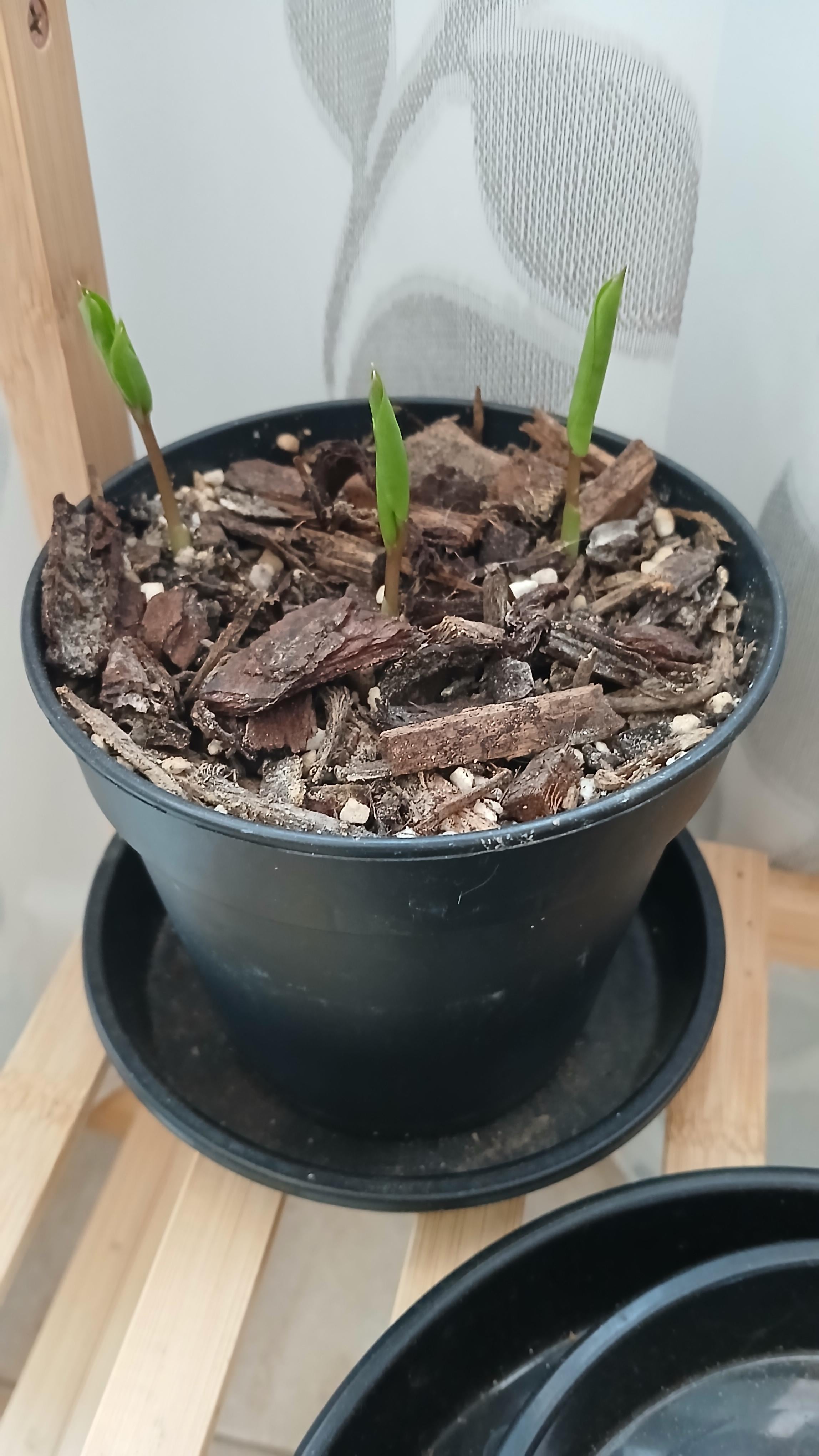 それで、私のzz植物は枯れましたが、それを捨てていたときに、根茎がまだ無傷であることに気づきました。土の入った鍋に埋めて、3か月間忘れていました。今日は可愛い新芽を見つけました。信じられないんです。