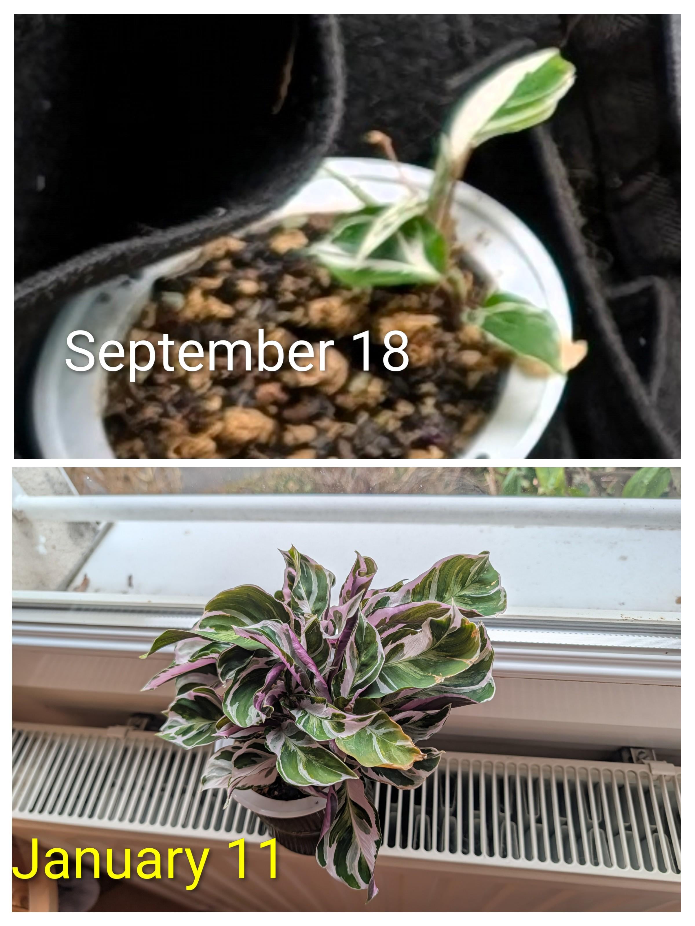 そのカラテアは何ヶ月もの間、最初の写真のような状態で、最も古いものが枯れるにつれて時折新しい小さな葉を出していた。