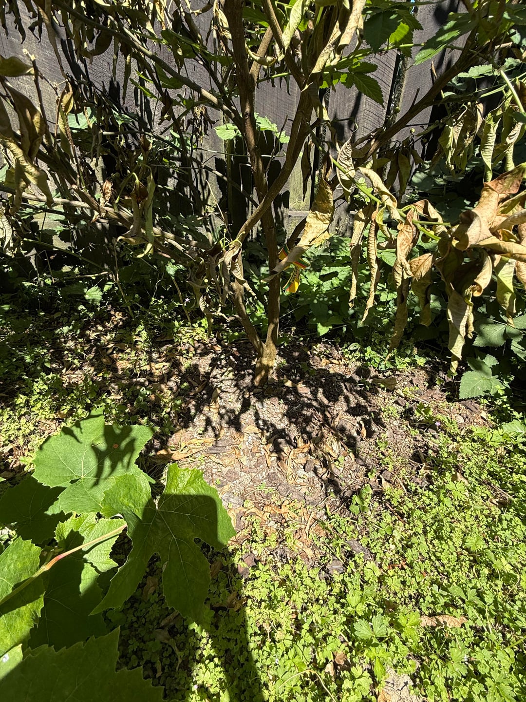 何が起こった可能性があると思いますか?何か、または誰かが毒を盛ったのだと思いますが、なぜこれほど局所的に発生したのでしょうか?隣のブドウとリンゴは健康そうに見えます
