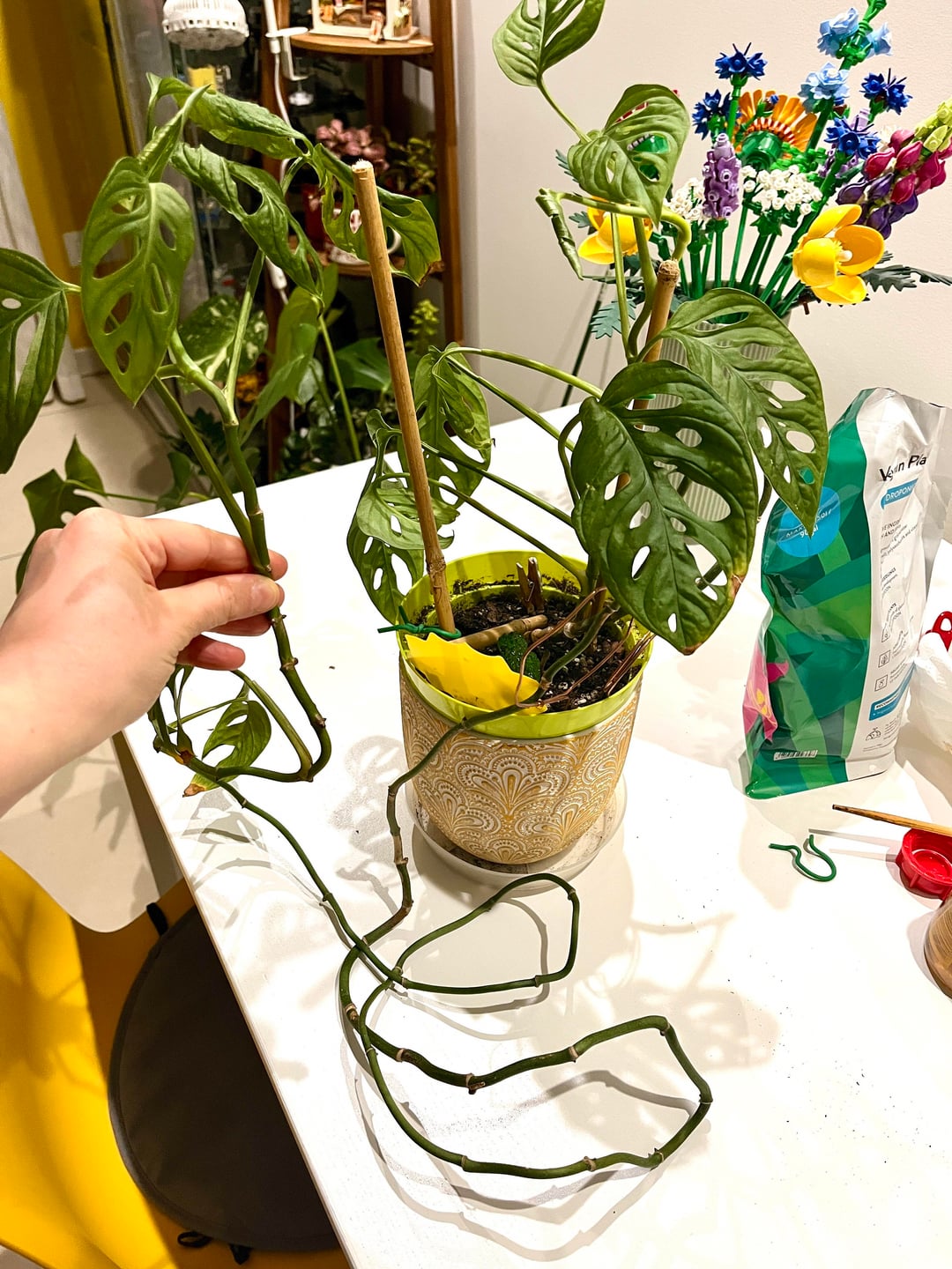 私は葉のない茎が長いモンステラ アダンソニーを飼っているのですが (彼女は少し前にひどい目に遭いました 😅)、彼女をもっと美しくしたいと思っています。