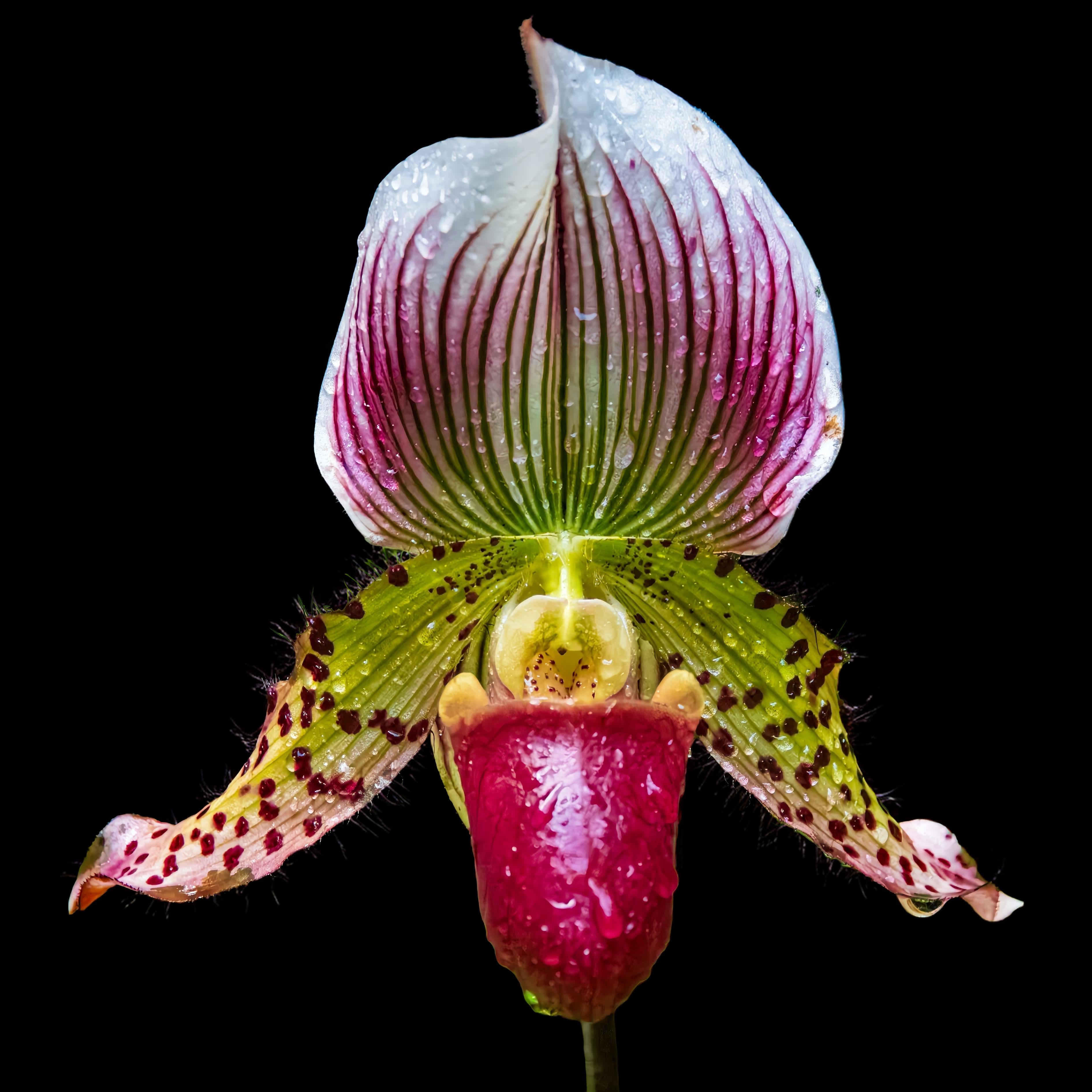 黒が花の繊細な特徴を際立たせます。
