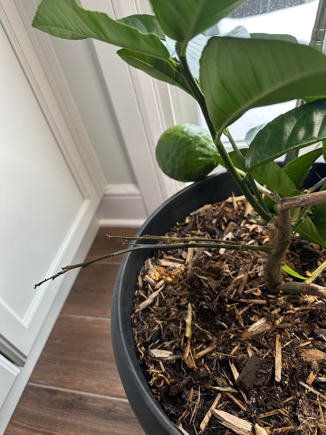 こんにちは!冬の間は室内に置いているポンデローサレモンの木があるのですが、今年はこれまでにない現象が起きています…葉がゆっくりと落ちていき、落ちた後は枝が緑色から茶色に変わり、腐ったように見えます。