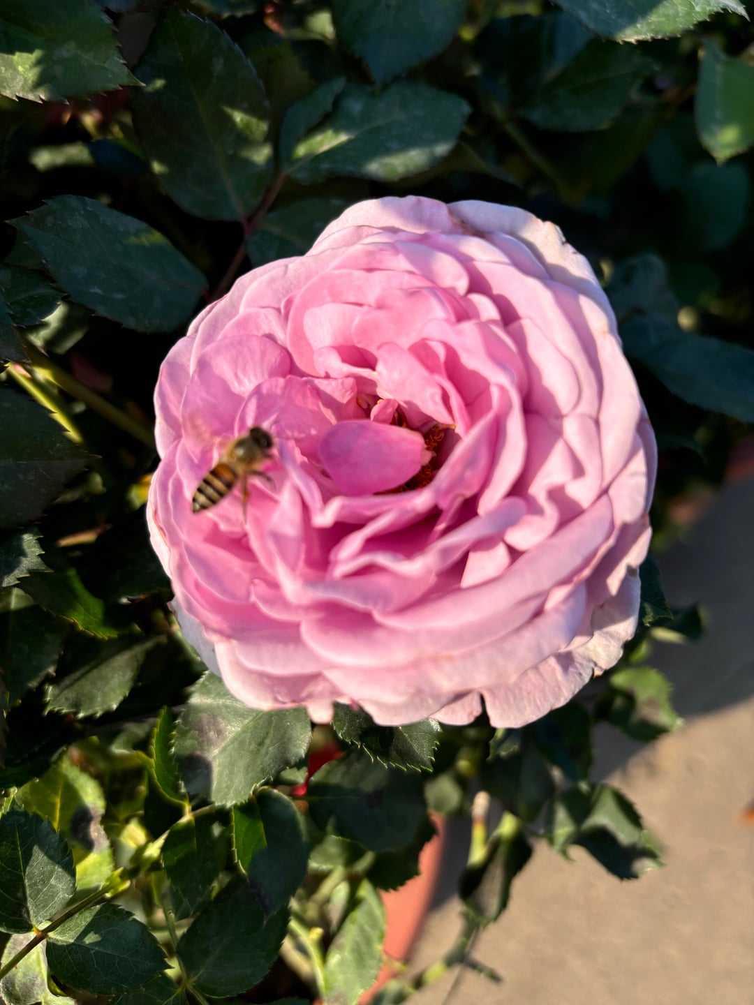 ミツバチが花に飛び込み、甘いごちそうを食べて、代金を払わずに去っていきました。 😄