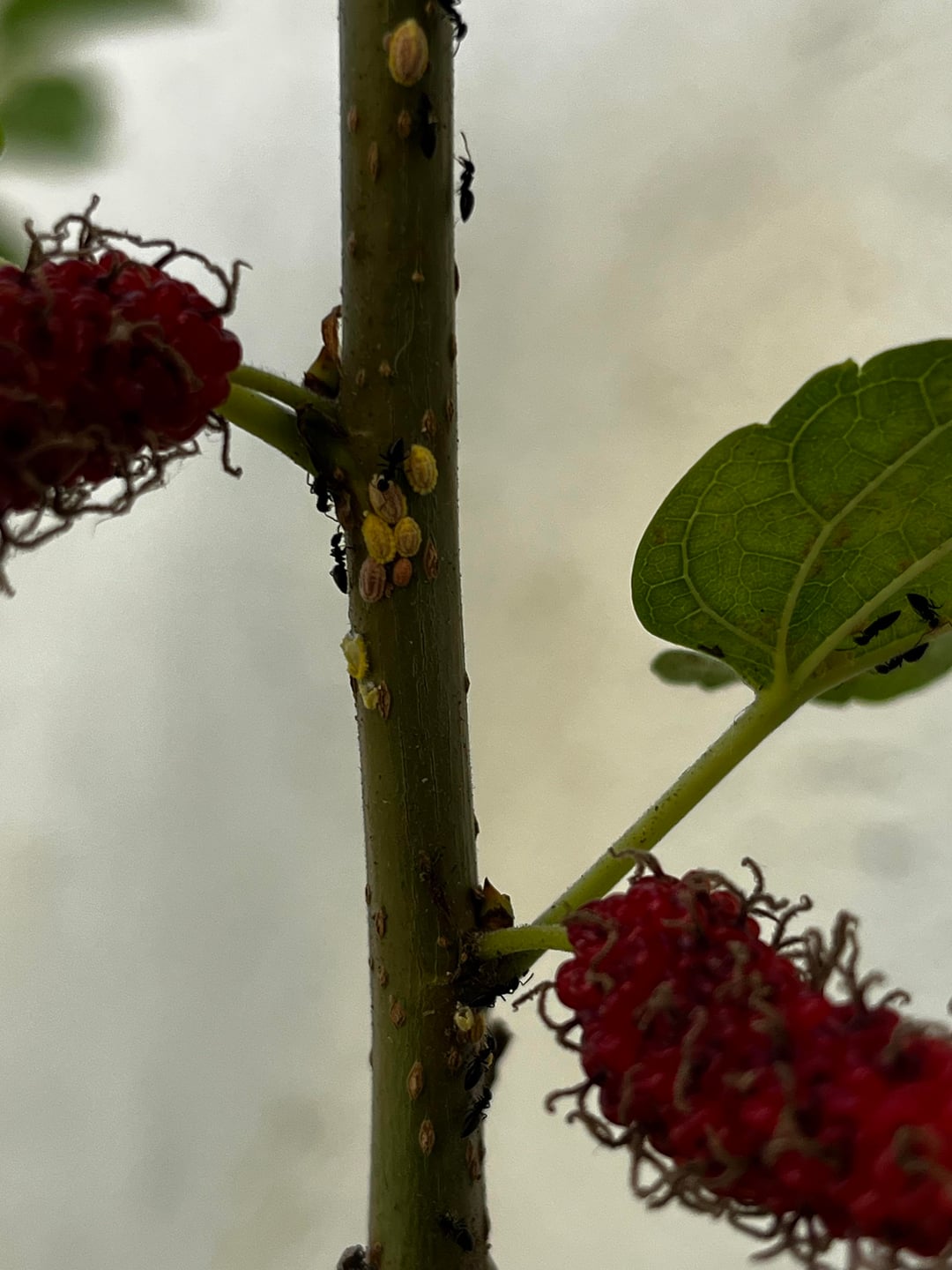 成長中の桑の木からこの虫を取り除くにはどうすればよいですか?また、茎や葉にも黒アリがたくさんいます。ありがとう!