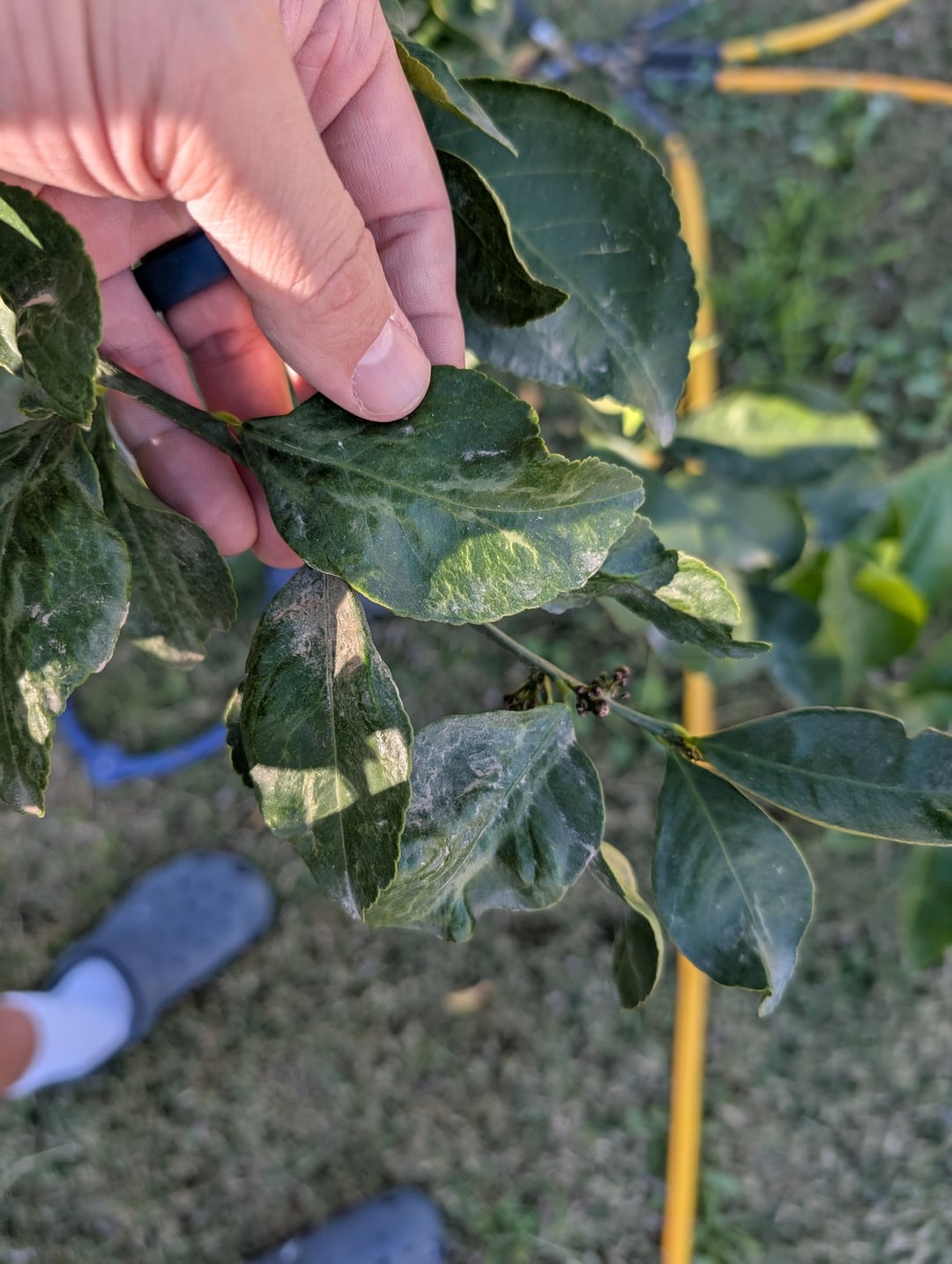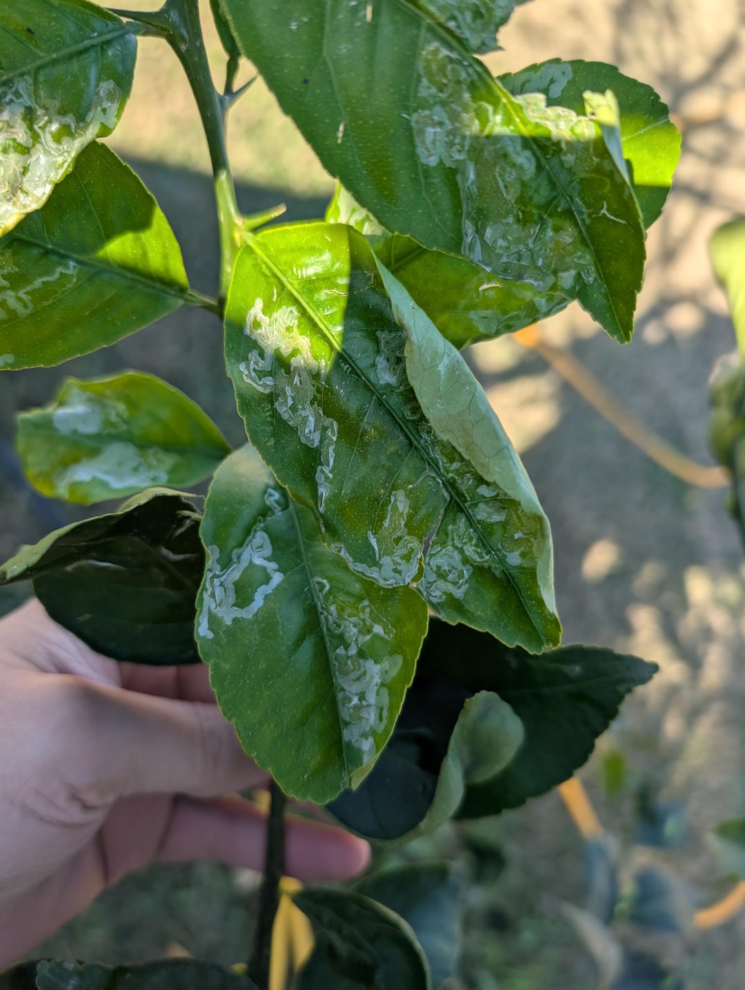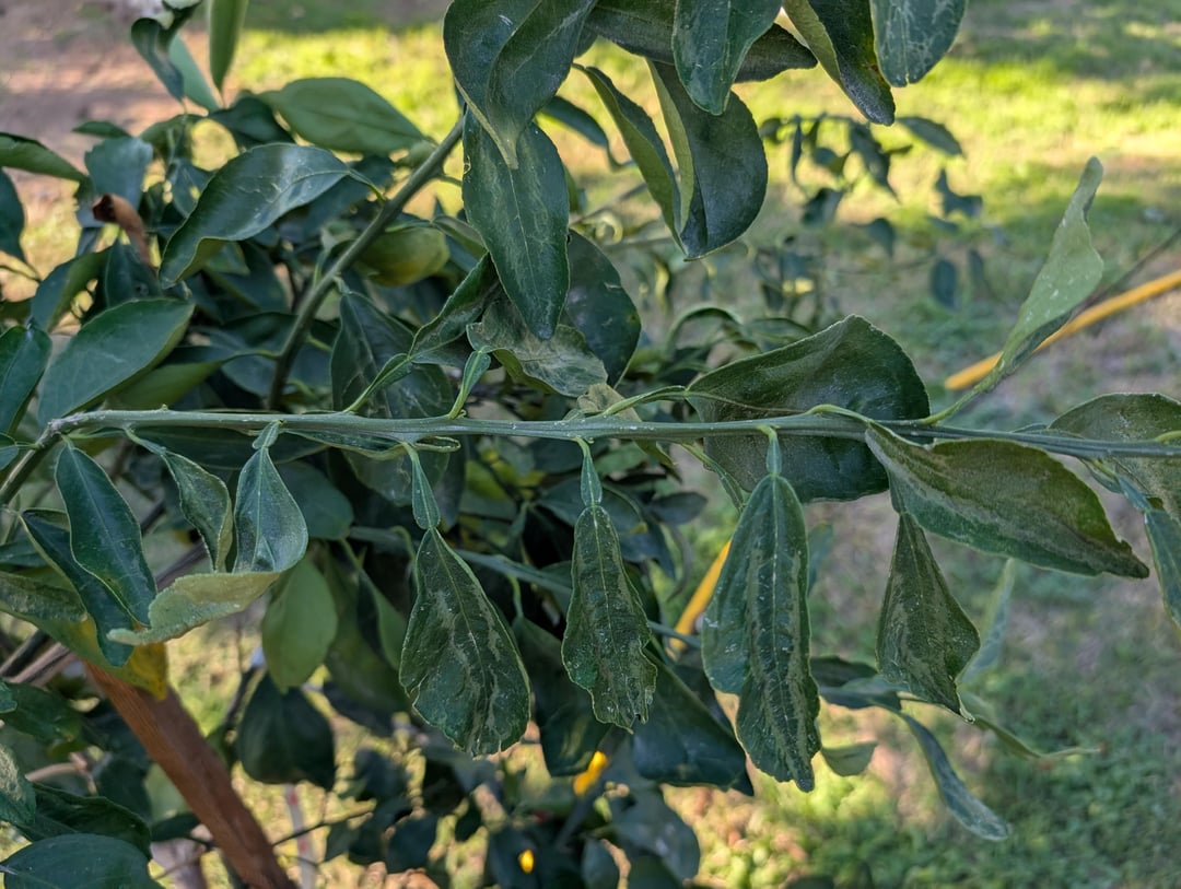 レモンの木:これは葉が黄色くなっている木です。これらのフォーラムで彼らは栄養を大量に摂取していると読むので、これは単に栄養素が不足しているのだと思います。黄色は木の真ん中だけで、昨シーズンは6~8個のレモンを実らせました(暖かい気候のおかげですでに花が咲きました)。これもハモグリバエと思われるものがいる個体です(私もこれらの園芸フォーラムでそれを読みました)。それらの葉を剪定し、ハモグリバエ自体を絞って殺し、さらに殺虫剤を散布することもできると読みました。まず、これがすべて正しいかどうかを確認したいのですが、これらの問題に対する意見や解決策に興味があります。