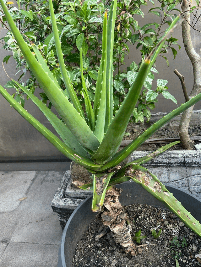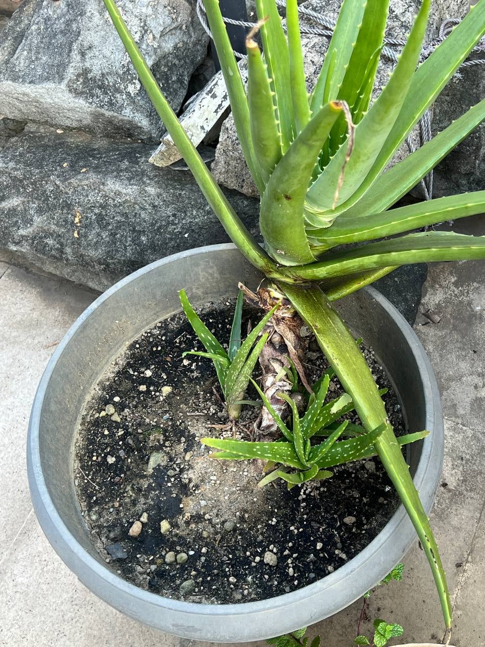 写真 #2 #3: これを植え替えるにはどうすればよいですか?大きめの鉢に植え替えて葉の根元まで土を入れたほうが良いでしょうか?それともチョップしますか
