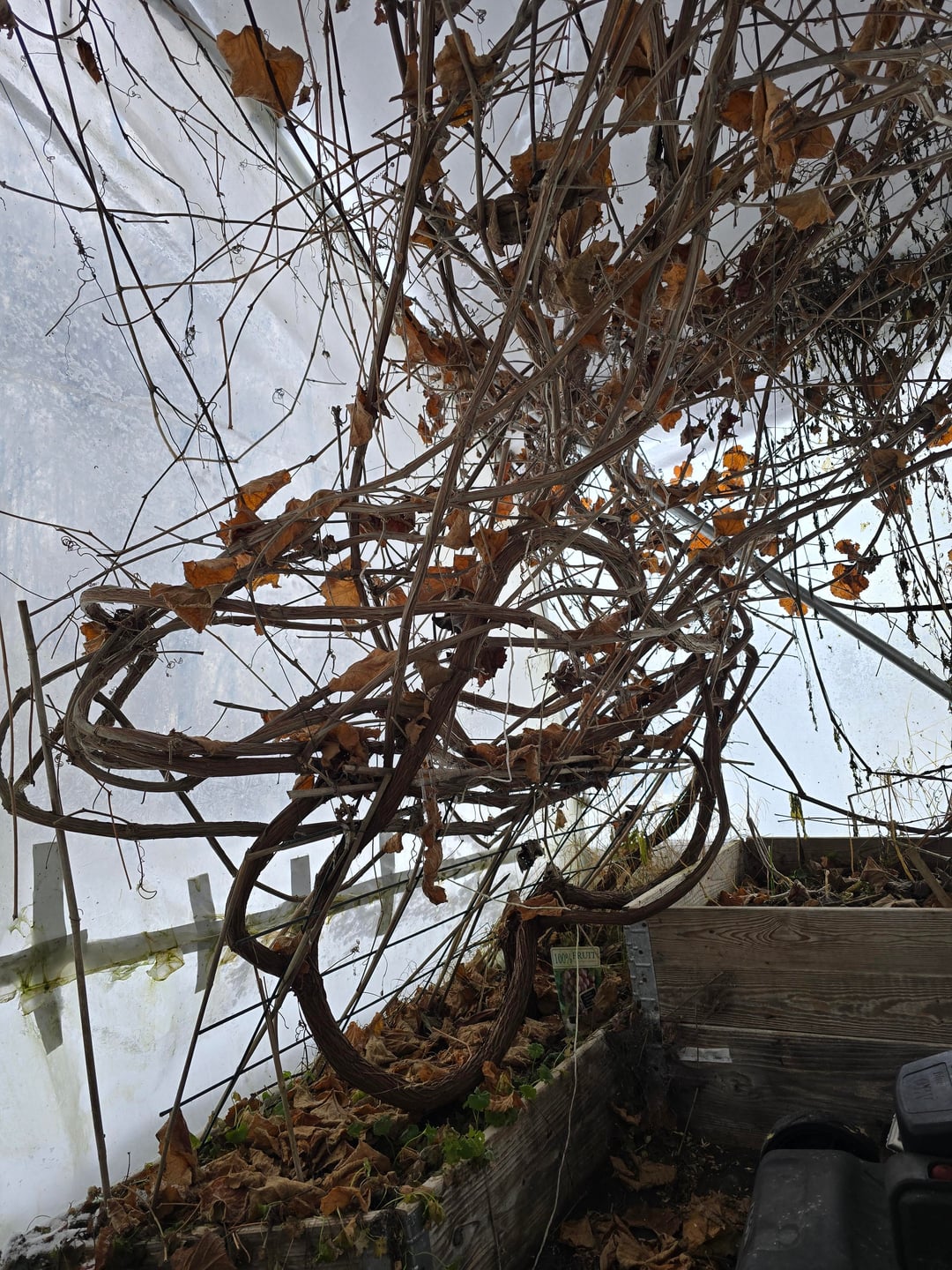 最近、温室付きの物件を購入しました。その温室にはブドウの木が完全にごちゃ混ぜにされています。今のところ、温室内の他のあらゆるものから日光を遮断しているだけだと確信しています。地面から5フィートの位置ですべてを切り、最初からやり直して、主幹を適切に支え、垂木に沿って成長するように数本の蔓を訓練したい誘惑にかられますが、それらの間にはスペースがあります。これを生産性の高いつるに変えたい場合、他に選択肢はありますか?