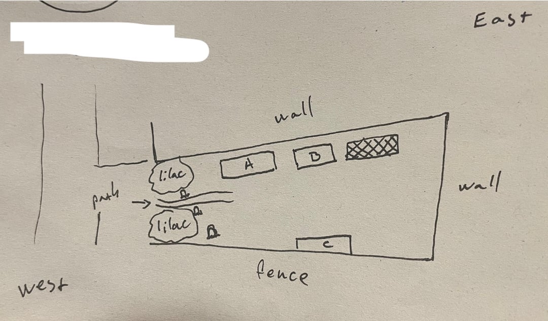 庭自体のレイアウト(および方向)の写真と、各ガーデンベッドの「マップ」を添付します。