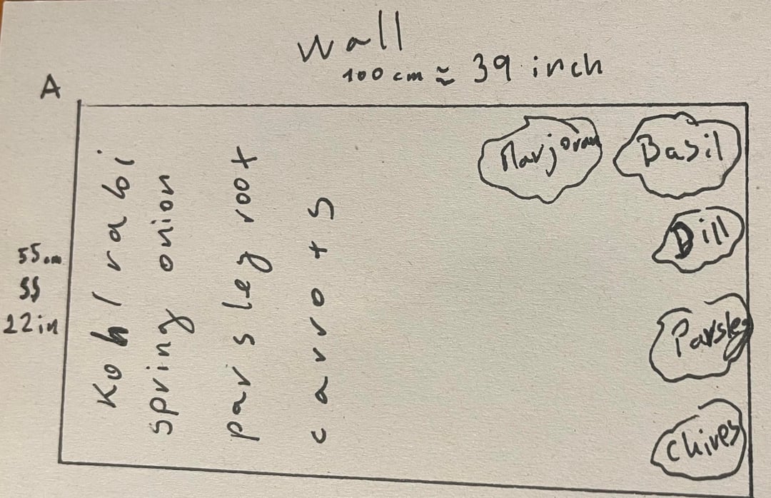 私は高さ 75 cm (30 インチ) の 1 つ (写真 A) と、高さ 35 cm (14 インチ) の下の 2 つ (B+C) のレイズド ガーデン ベッドを 3 つ作っています。アドバイスが必要なのは、植物のレイアウト(?)と花を置く場所です。