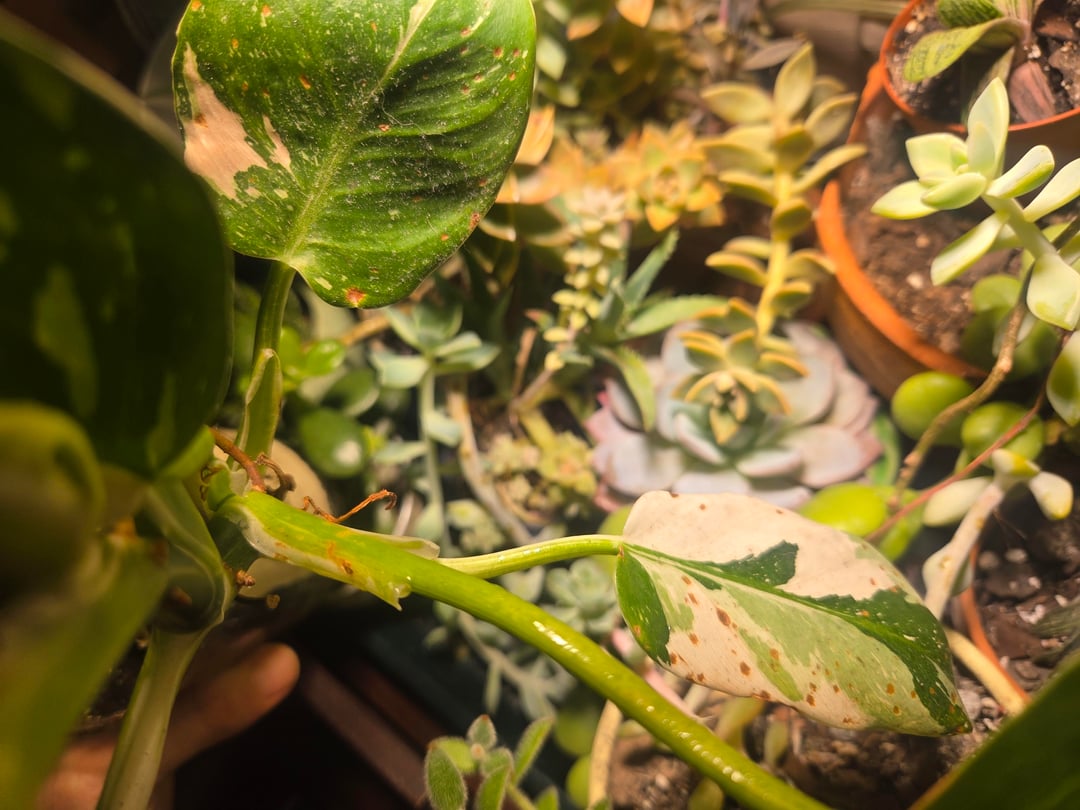 最近コナカイガラムシに対処したのですが、益虫で処理しなかった植物(悪魔のような虫を避けたと思っていた植物)は、寒波が来るとすぐにコナカイガラムシの兆候を見せ始めました。 茶色の斑点がコナカイガラムシによるものである可能性はありますか? また、もっと大きな容器に移す必要があるでしょうか。写真では分からないかもしれませんが、根が見えません。 前もって感謝します