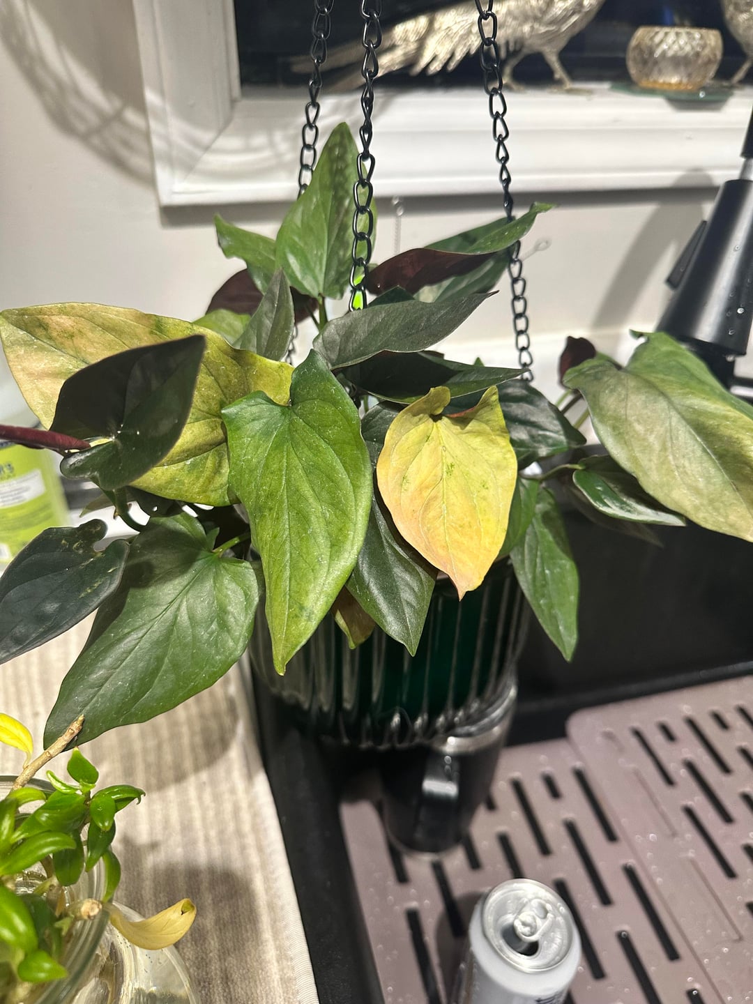 葉が白くなっていますが、原因はわかりません。 植え替えたばかりなので、葉が落ち始めたら水やりするだけです。南西の窓から数メートル離れたところに降り注ぐ明るい間接光の中で。 害虫も付いていませんし、頂いてから肥料も与えていません。 2枚目の写真: 挿し木を水中で増やした後、土に移しましたが、まだ濃い緑色が失われています。何かアイデアがある人はいますか?
