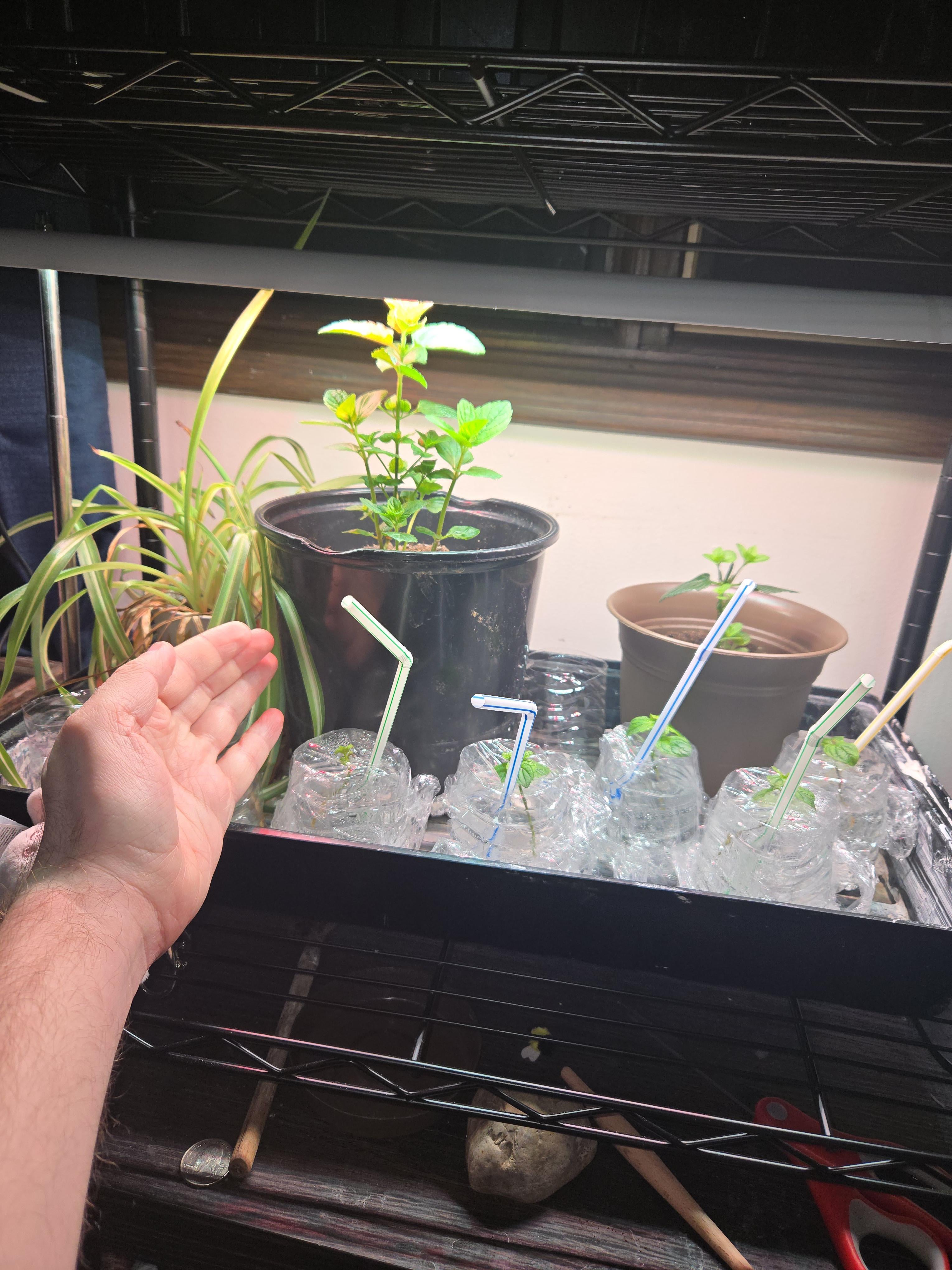 黒すすカビから回復した後、私の植物はついにすべて屋内庭に根を出しました。葉が修復不可能なほど傷んでいたので、うまくやっていけるかどうかもわかりませんでしたが、どうやら自然が味方してくれたみたいです。私の2つの主要なミント植物が成功しただけでなく、2つの主要なミント植物から作った5つの小さなミントの挿し木も成功しました。特に主要なミントの 1 つが、今ほど健康で大きくなったことはありません。正式にミントが7本になったので、新しい挿し木はやめて、剪定が必要なときは、芽からのみ収穫することにします。また、私のクモの植物も元気です。私は小さなクモの植物を育てています。すでに葉が容器から出てきています。大きなクモの植物は非常に大きく成長し、その葉が下の泥炭鉢のいくつかに触れるようになりました。私の親しい友人は、クモの植物が下の容器に根を張るのではないかと考えています。このニュースを聞いて興奮しています。確かに良いニュースです。将来が待ちきれません。春が本格的に始まったら、これらを屋外に出すつもりです。もっと植物を作りたいのですが、すぐにスペースがなくなりそうなので、それが挿し木をやめた主な理由です。今年のクリスマスに家族が買ってくれた招き猫の像が活躍しているようです。それは幸運かもしれないし、あるいは信仰かもしれない。私が今までと違うことをしているのは、実際に軽く水やりをすることです。私は植物に水をやりすぎる傾向があることに気づきました。ケア外です。忍耐強くいることは庭師としての私の成功の重要な要素であり、今年屋外の庭を作るときにこの教訓を今後も生かしていきたいと思います。ストローは空気交換用ですので気にしないでください。私は水耕栽培をしているので、エアストーンを入手しています。私は主にこれらの植物が発根するかどうかを待っていましたが、実際に発根しました。今年も皆様には大変親切に、また沢山のアドバイスを頂きまして誠にありがとうございました。私は聞いてみましたが、うまくいきました。聞くことも、これを通じて私が学んだもう一つの重要な教訓です。今度は、すべての植物に名前を付けてみます。私のクモの植物も含めて。