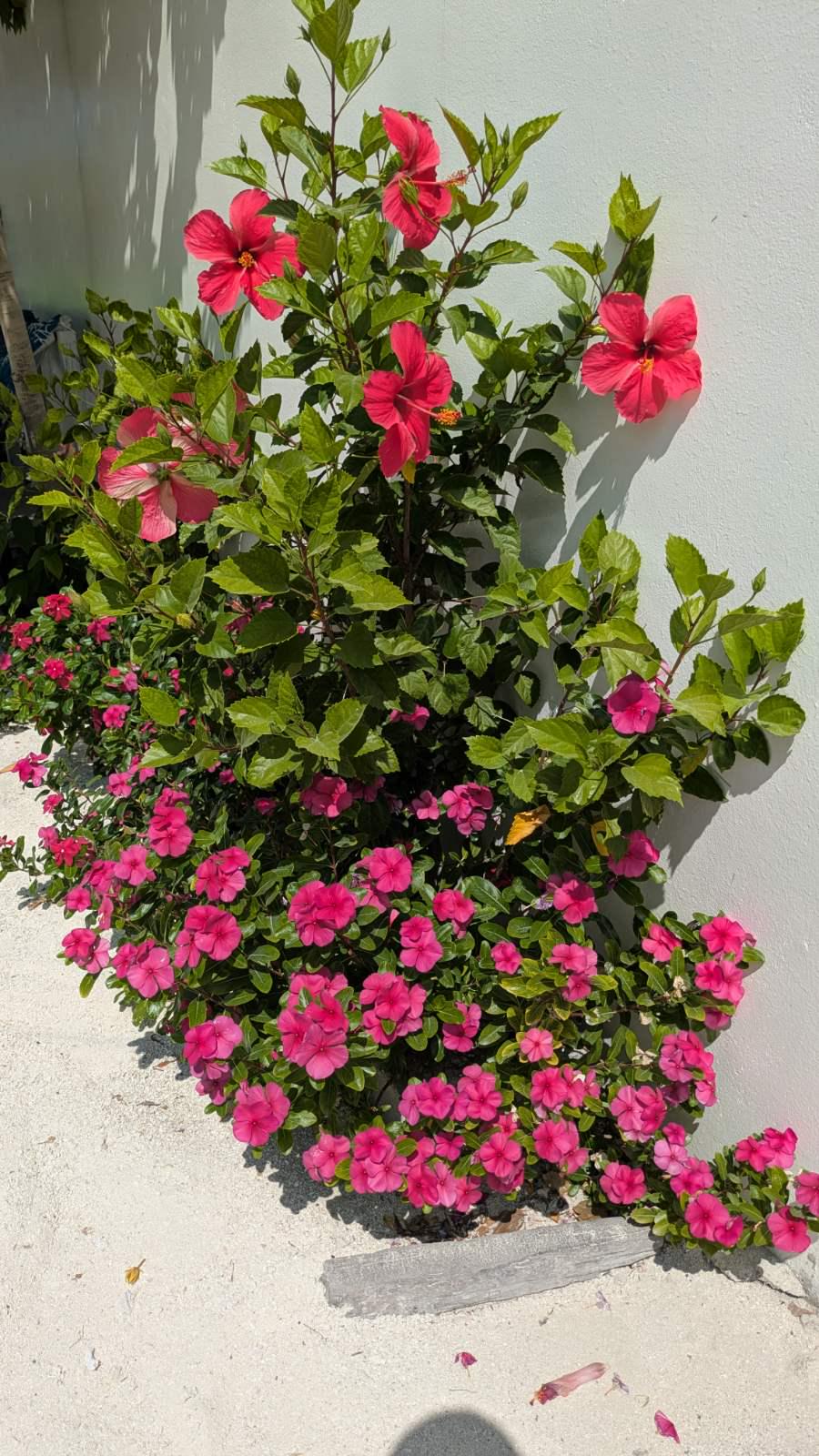 ハイビスカスとビンカ。モルディブで栽培されています。