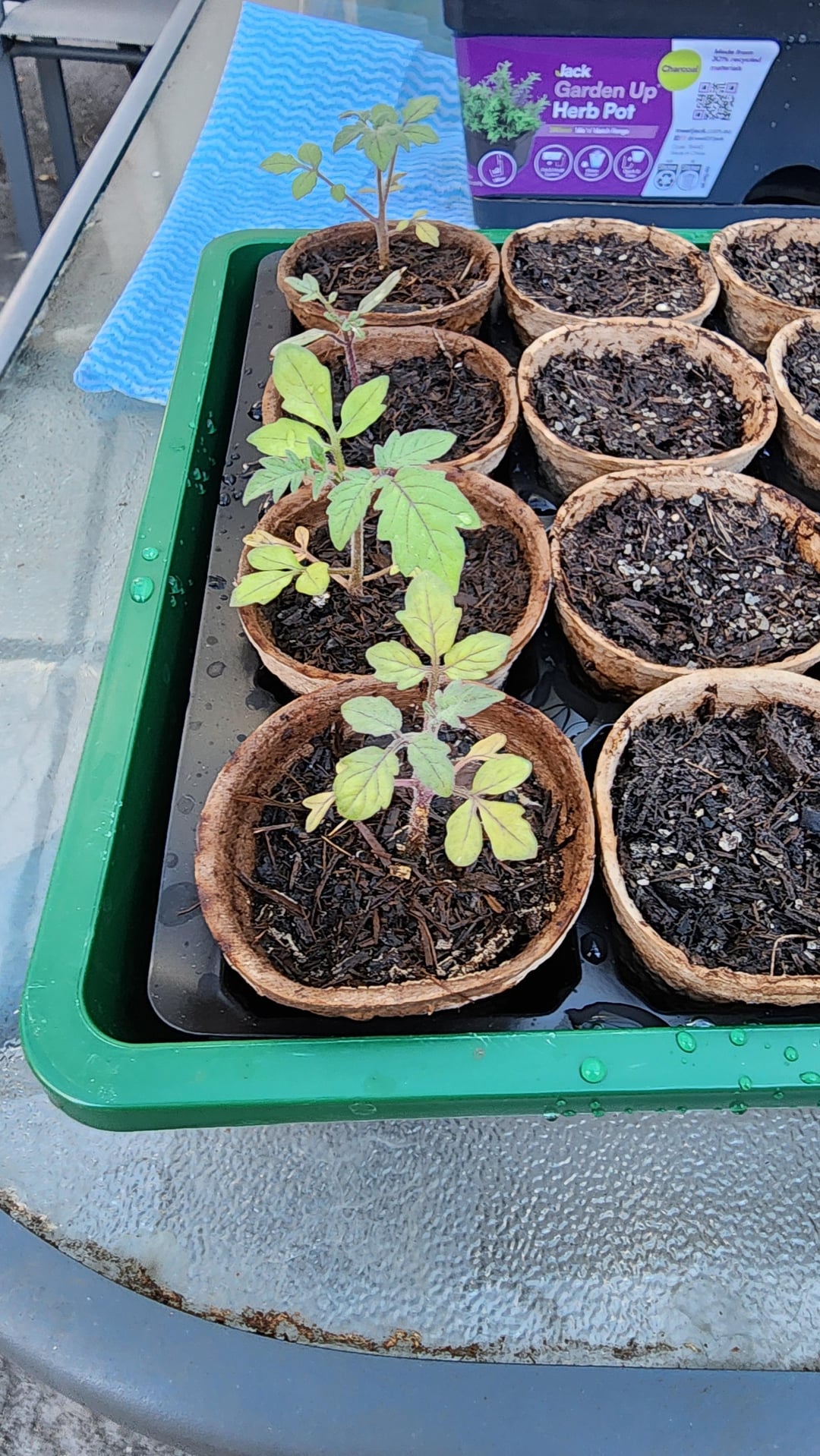 小さなトマトの苗がたくさんあります。古い葉の一部が黄色くなってきました。茎はまだかなり丈夫ですが、トマトの植物がこのように古い葉を落とすのが普通なのかどうかはわかりません。 現在は1日1回水やりをし、直射日光の当たらない場所に置いています。 アドバイスをいただければ幸いです