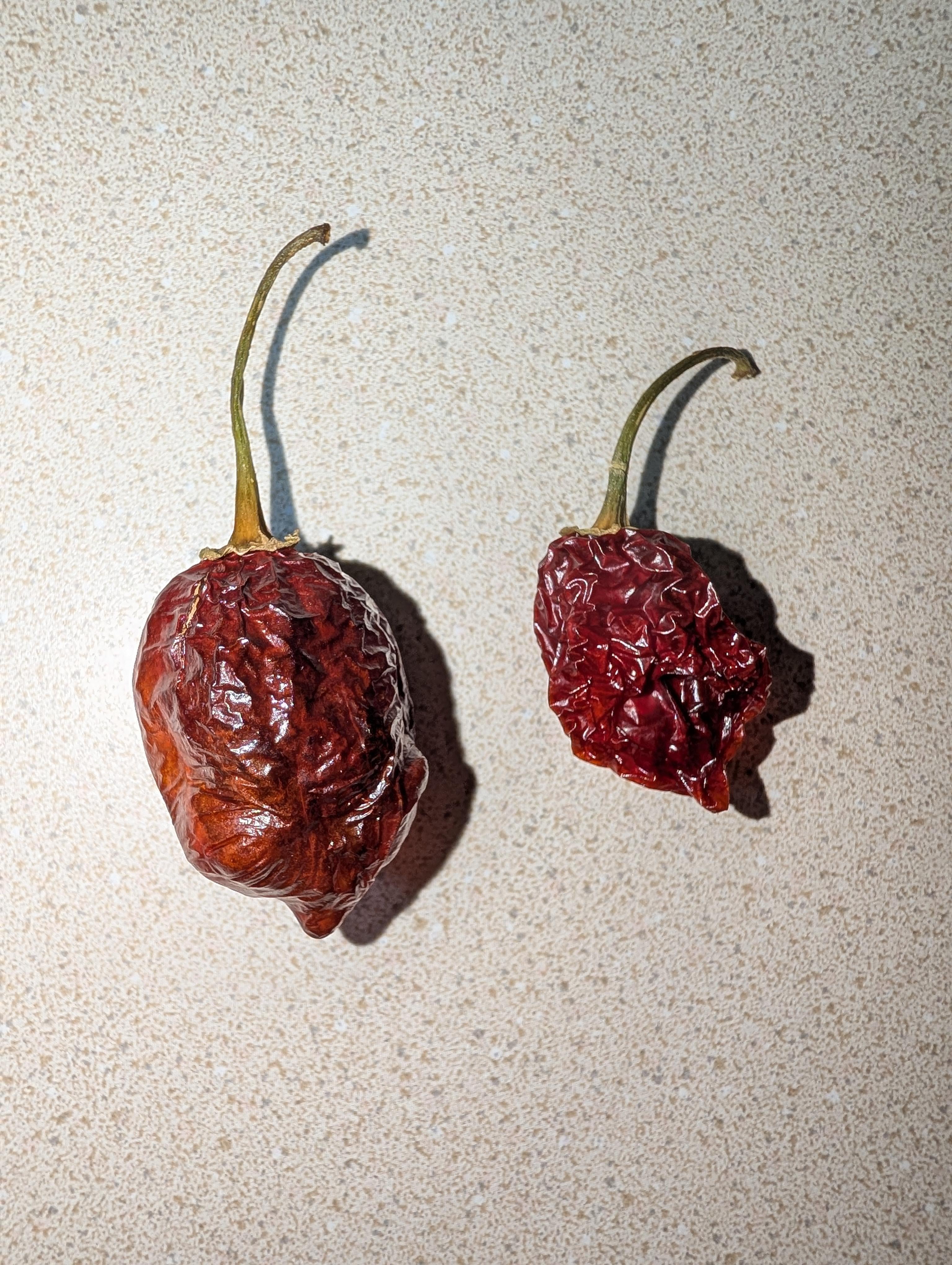 庭からハバネロをたくさん採ってきたので、ノンフライヤー(約120°F)で脱水し始めました。しかし、私のハバネロのいくつか (おそらく 1/5) が縮むのではなく、風船のように膨らんでいることに気づきました。なぜこれが起こっているのかわかりますか?