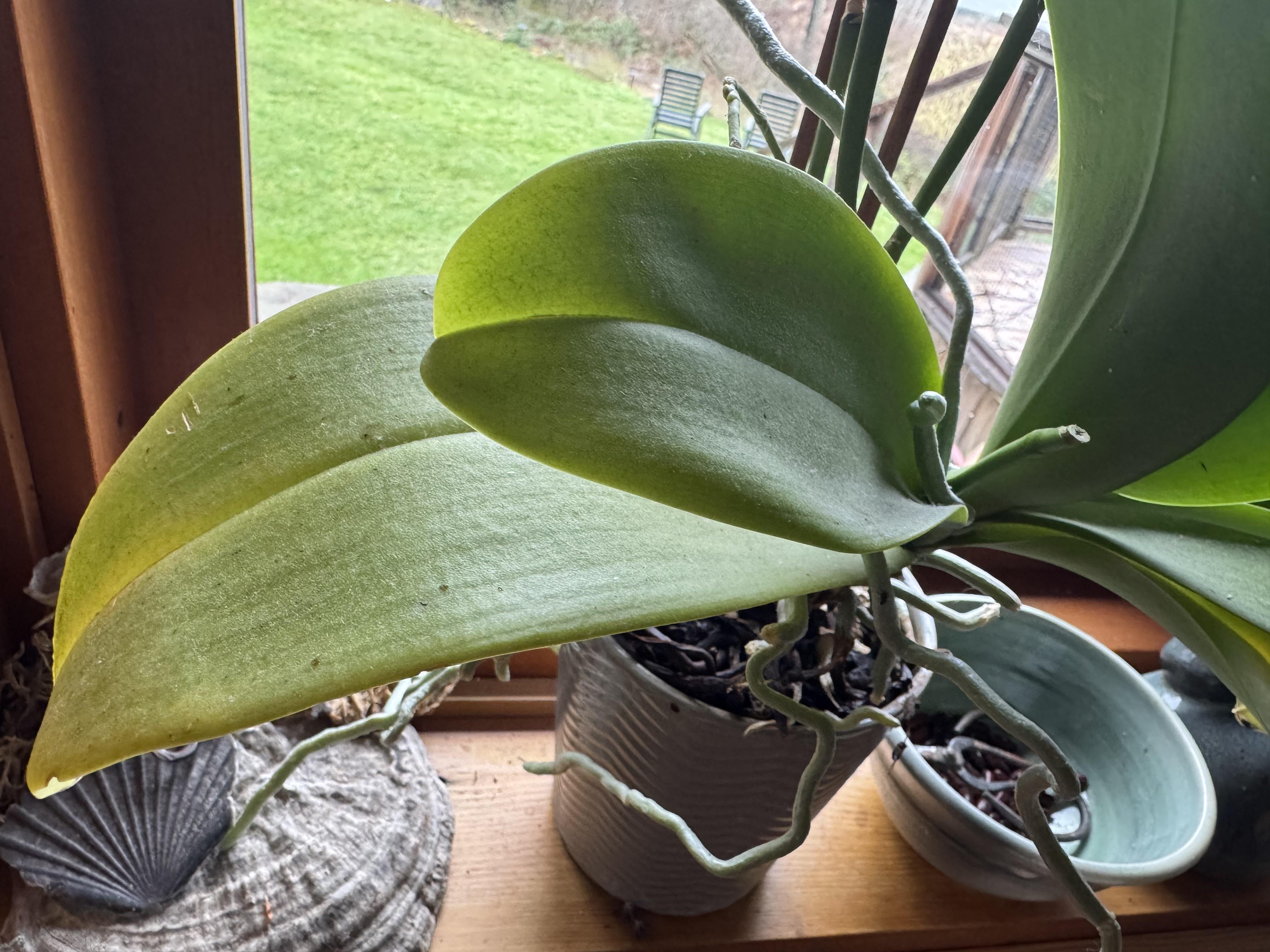 この蘭はおそらく樹齢5年以上です。大きくて勢いがあり、定期的に花を咲かせます。しかし、その葉は青白い側にあります。保健部門全体に元気を与える最善の方法は何でしょうか?