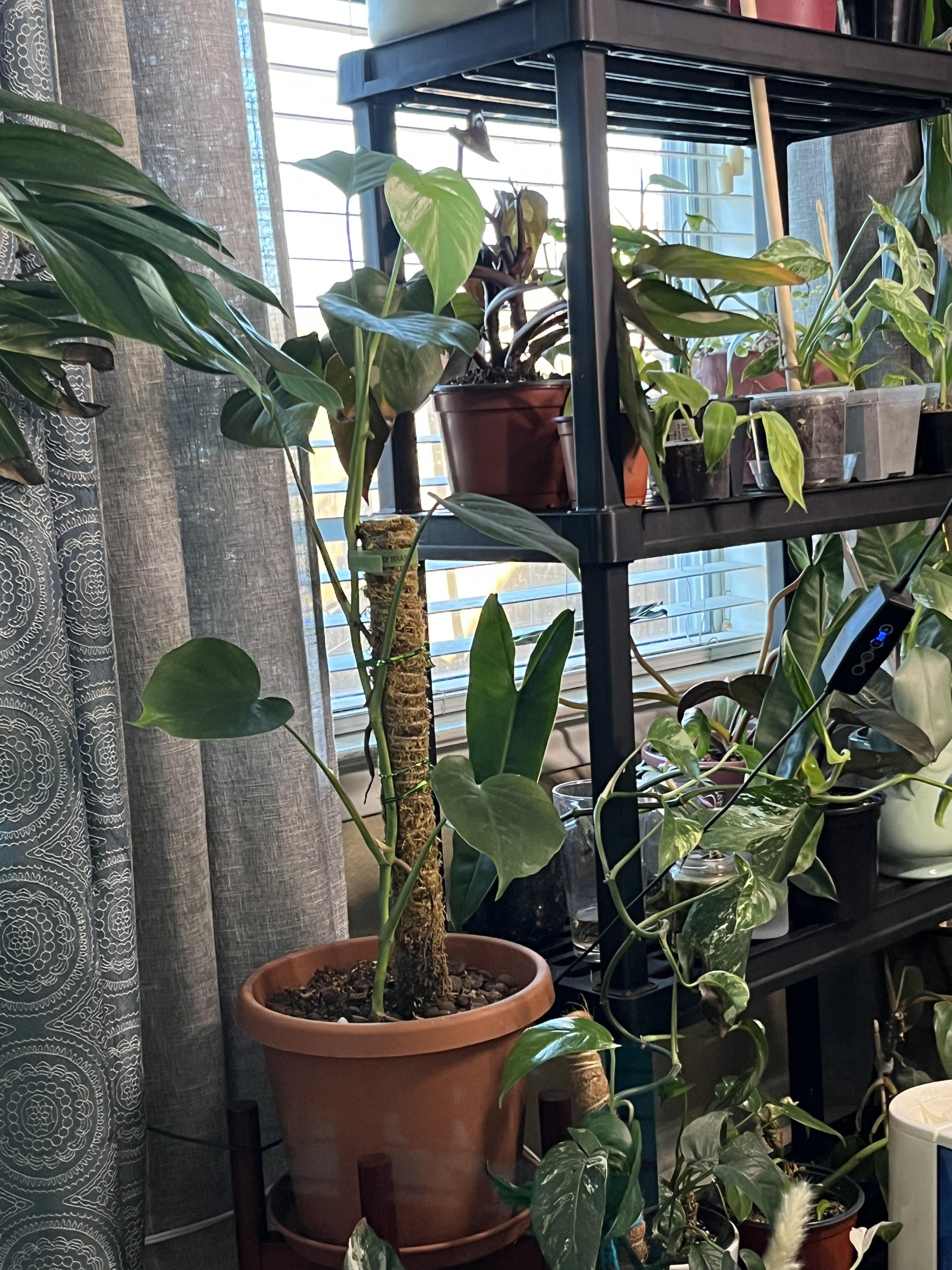 このモンステラ シエラナを誰かから譲り受けたのですが、それを手に入れてから初めて葉を付けました。でも、茎が小さいので、もっと小さな鉢に植えたほうがいいのでしょうか、それとも放っておいたほうがいいのでしょうか?土壌は完璧です