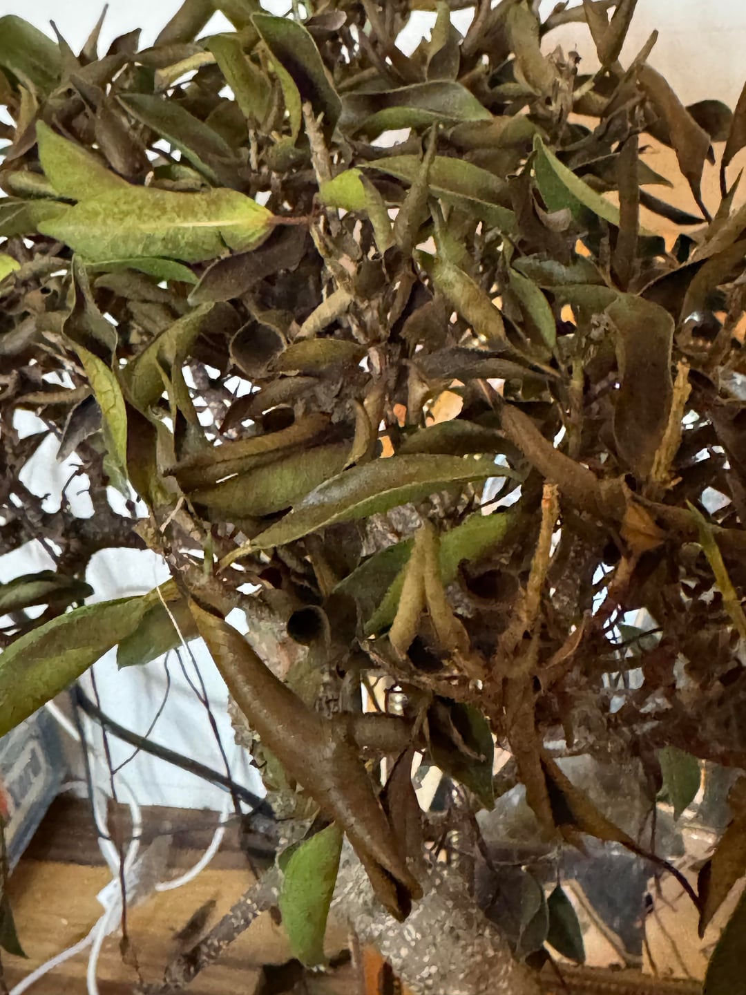 室内に置いている盆栽の木が葉を落としてしまいました。西向きなので光量は平均的です。 3週間水をあげていなかったのですが、3日か4日で突然葉が全部落ちてしまいました。 土はとても乾いているように見えました。水やりはしましたが、ここ3日ほど葉が落ち続けています。 水、光、何だと思いますか?分かりません。 11月中旬から飲んでいますが、今のところ大丈夫です。 ありがとう、そして良い一日をお過ごしください:)