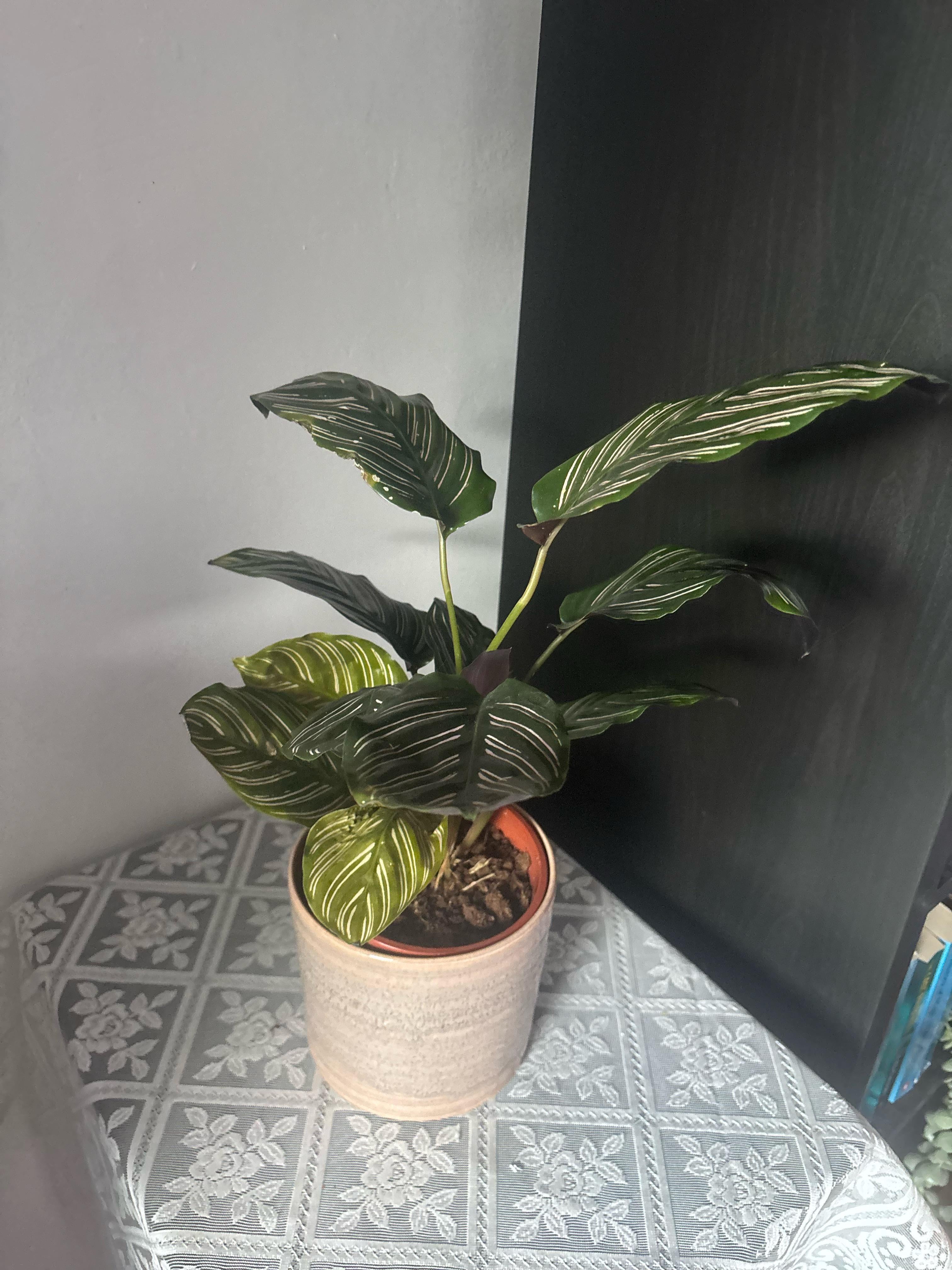 小さな葉のいくつかは非常に青白く乾燥しているように見えます。土もあまり乾いていないので、買ってから一度も水やりをしていません。加湿器を近くに置いているのですが、そこには濾過した水だけを入れています。私の何が間違っているのでしょうか?