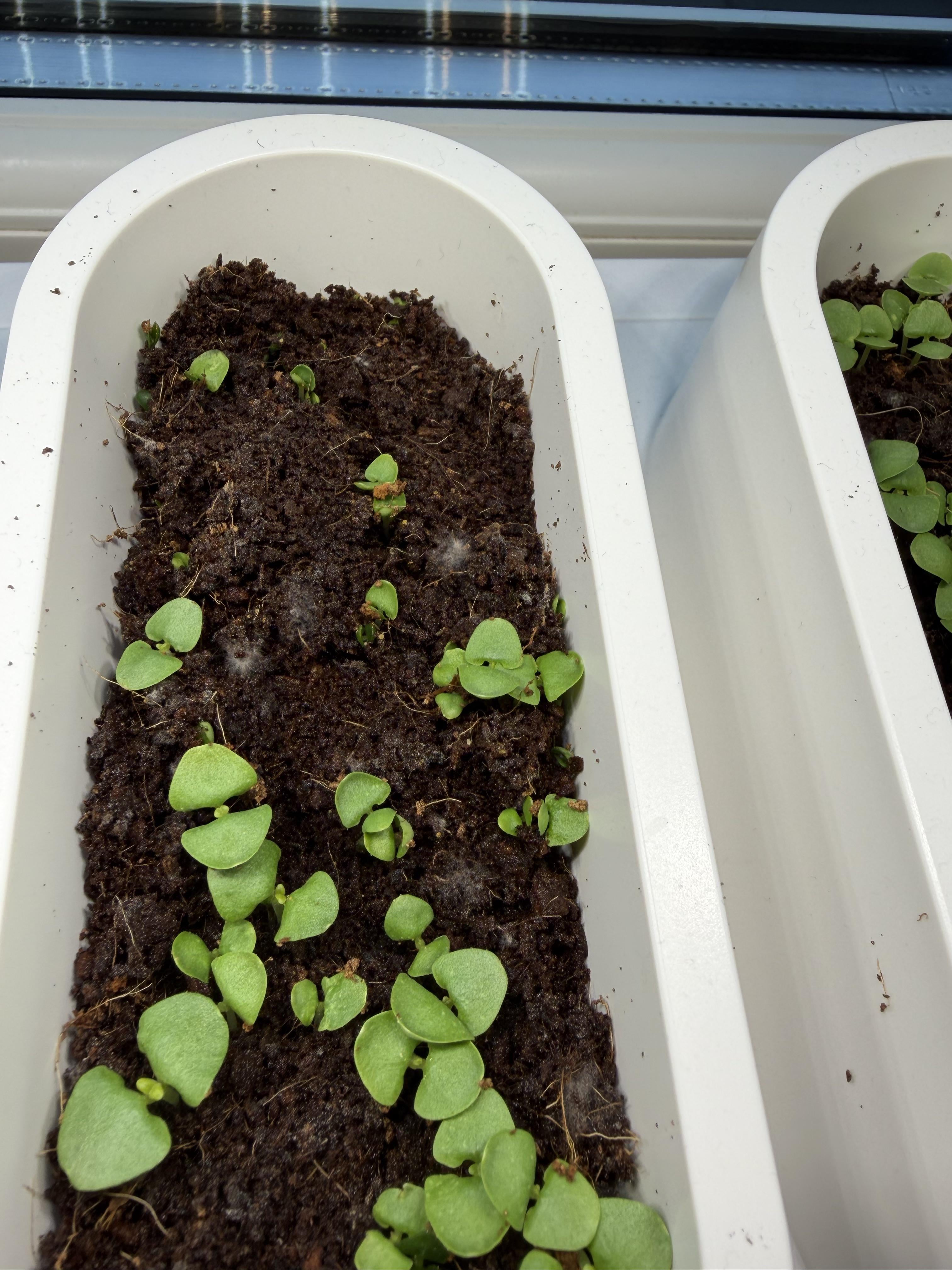 ウミウシの室内プランターでバジルを育てようとしています。誰かこの灰色のぼやけた斑点を手伝ってくれませんか。カビですか?