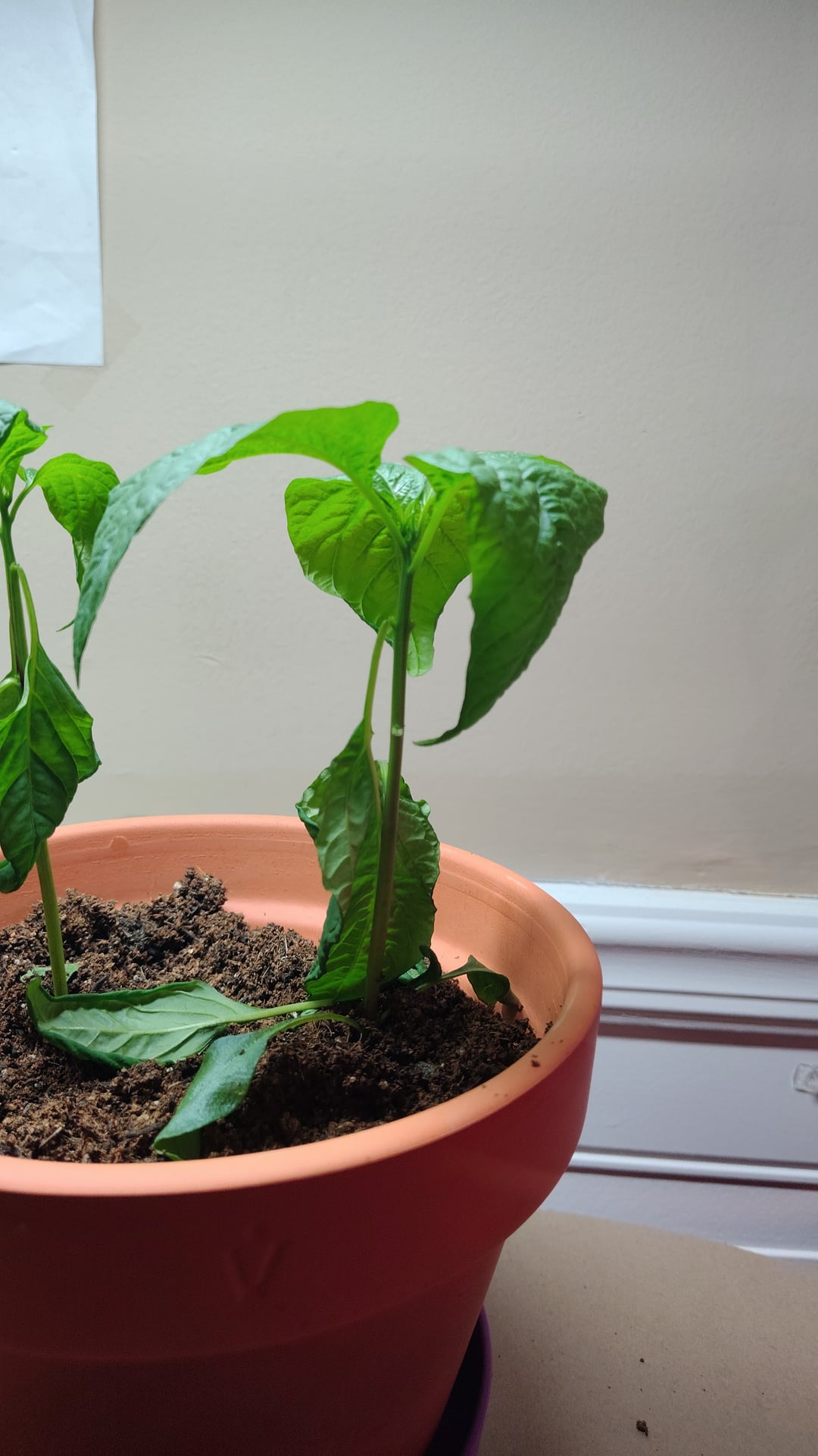 皆さん、こんにちは。これらは私のバナナペッパーの植物です。ご覧のとおり、どちらも下の葉がしおれて垂れ下がっています。グーグルで調べてみると、水のやりすぎかもしれないと出ましたが、土の表面は乾いていて、底は湿っているようなので、水は追加していません。