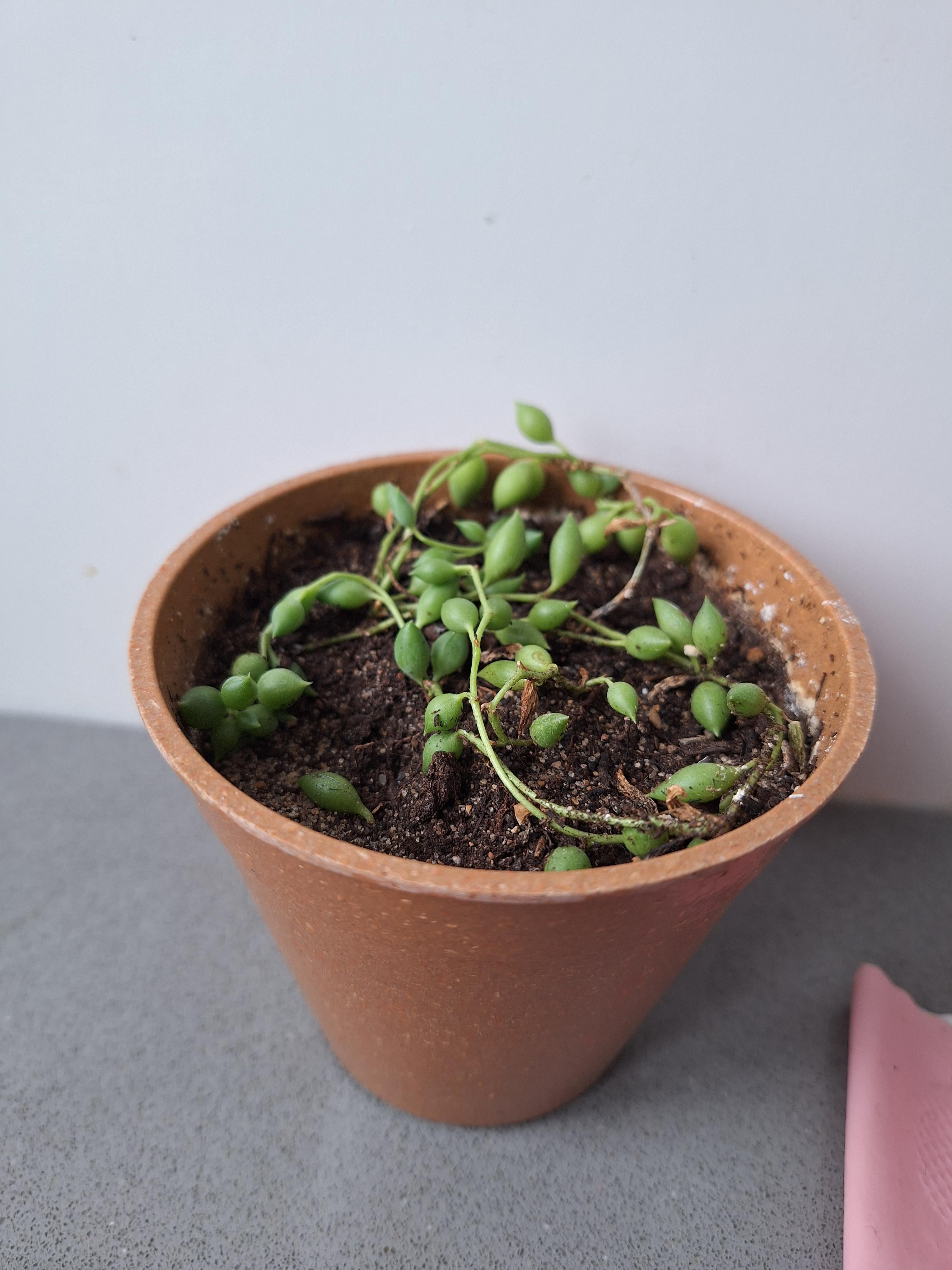 こんにちは!私はこの一連の真珠 (またはその姉妹の 1 つ) を約 2 年間持っていました。どこかで摘んだミニ挿し木から発芽しました。最初の数か月でこの状態まで大きく成長しましたが、それ以降は停滞しています。南向きの窓の近くに多肉植物の鉢植えに植えています。 10日に1回くらい、土が砂っぽくなったら水やりをします。水切れが良いです。ここで何が欠けているのでしょうか?私はただ楽しい植物を周囲に置くことを楽しんでいる初心者で、それが棚から滝のように落ちるのを見ることを夢見ています。前もって感謝します!