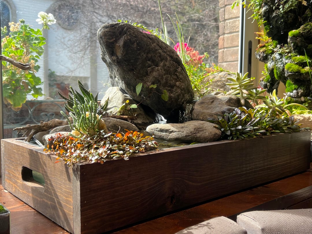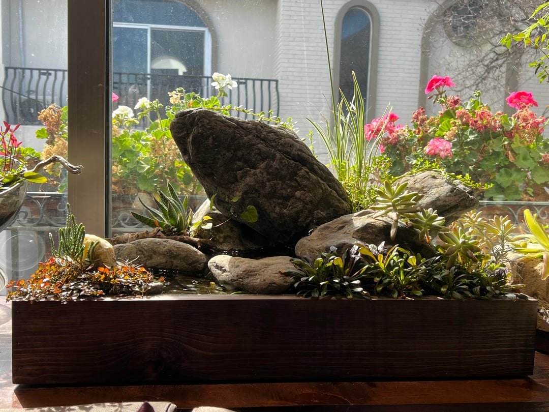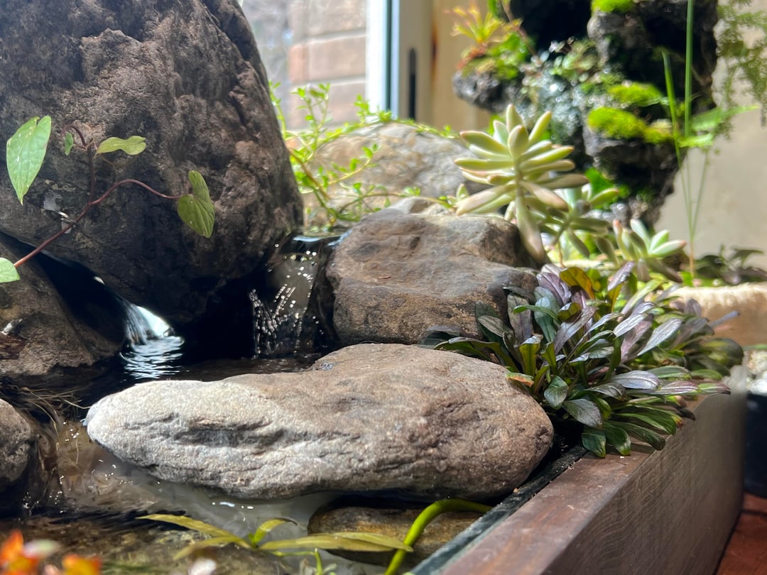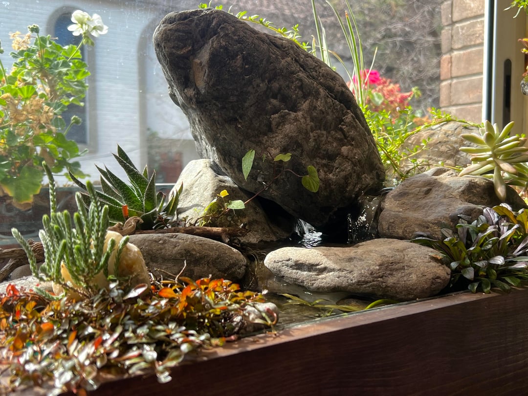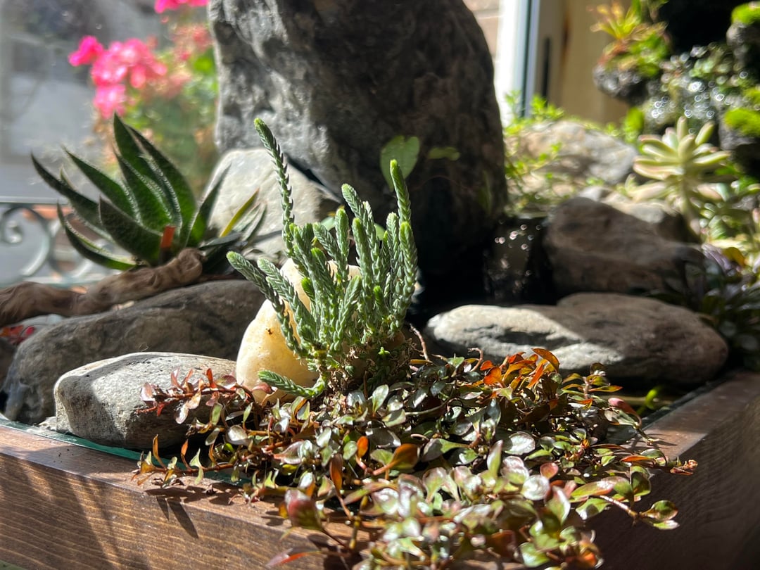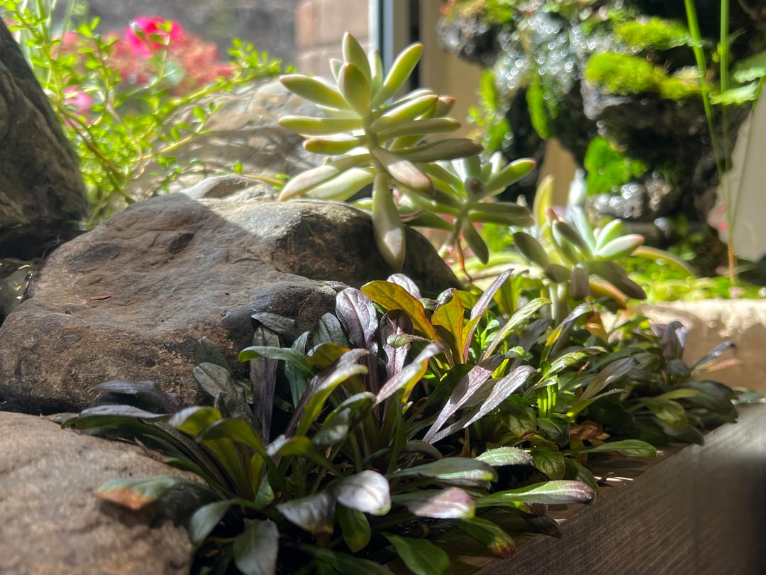 私のミニチュア風景の 1 つを紹介します。これには、数回のハイキング中に採取した岩が含まれています。密閉されたプランターに水が入っているにもかかわらず、多肉植物がそこにあることに気づくでしょう。 時々これらを作って生計を立てることができたらいいのにと思います:p