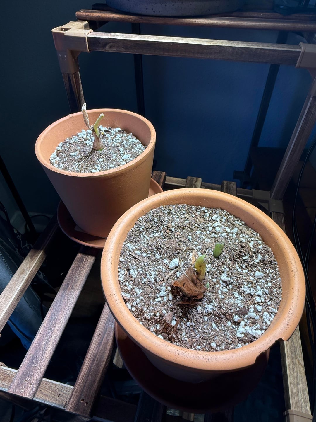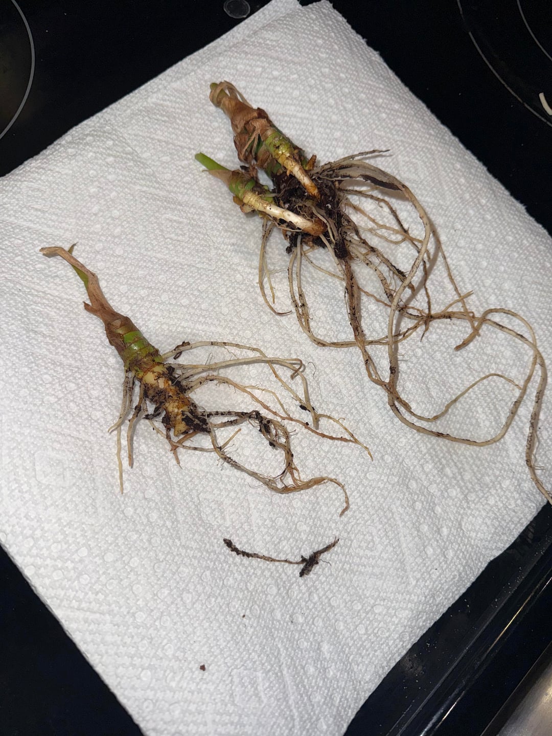 このグリーンベルベットは9月に入手したもので、屋外で元気に咲いていました。 2週間休暇をとり、その間外に放置していましたが、戻ってきたら葉はほとんどなく、根腐れが起こり、根のほとんどが枯れていました。今にして思えば、ちょっとばかげた天気だったが、私がいない間は気温が 65 度を下回ることはなかったし、雨も数回降ったと思う。