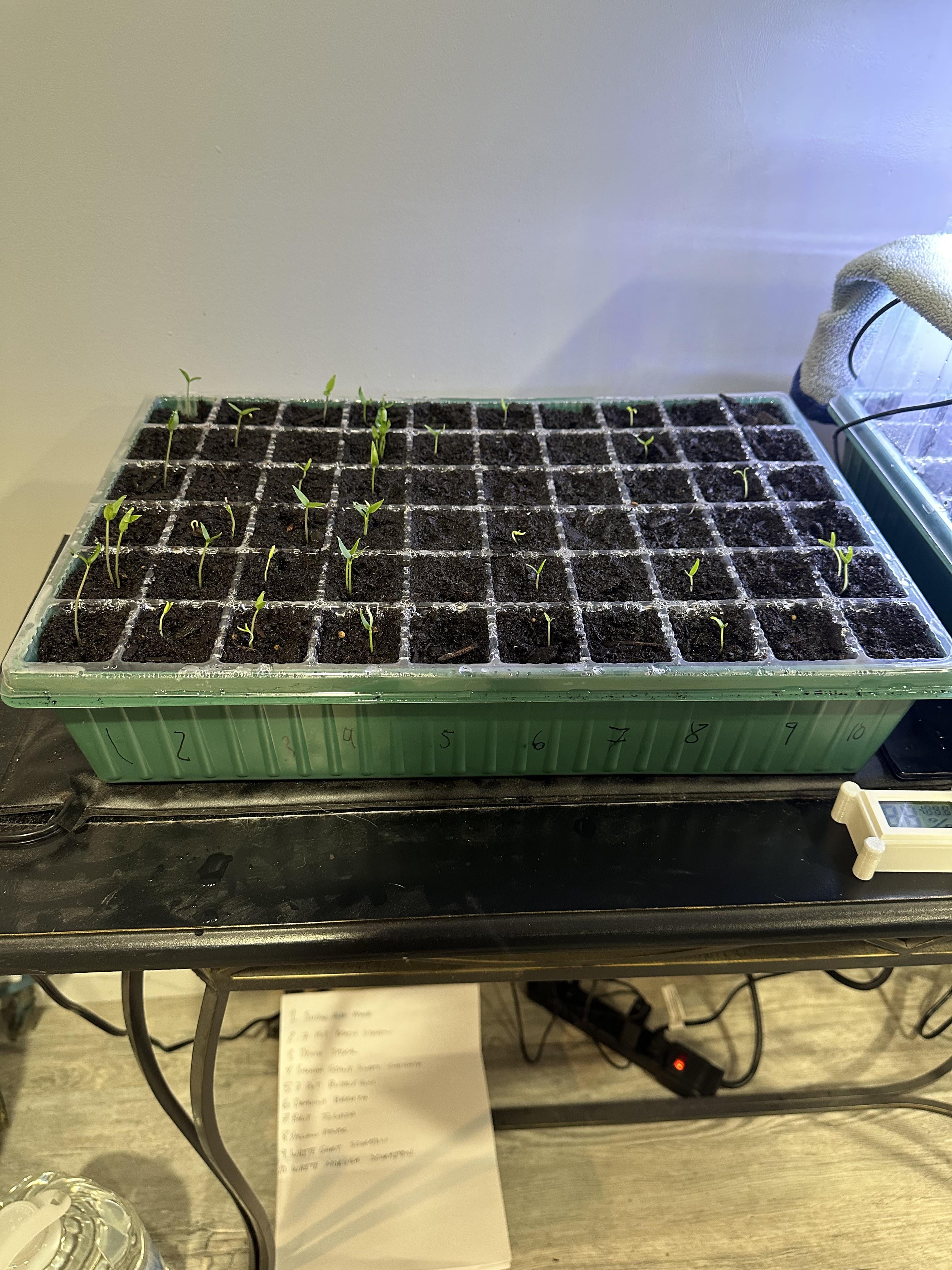 ピーマンの苗ができて10日目。私はライトを24時間点灯する時間を減らし、1日あたり約14〜16時間にしました。ドームも1時間外してもらいました。