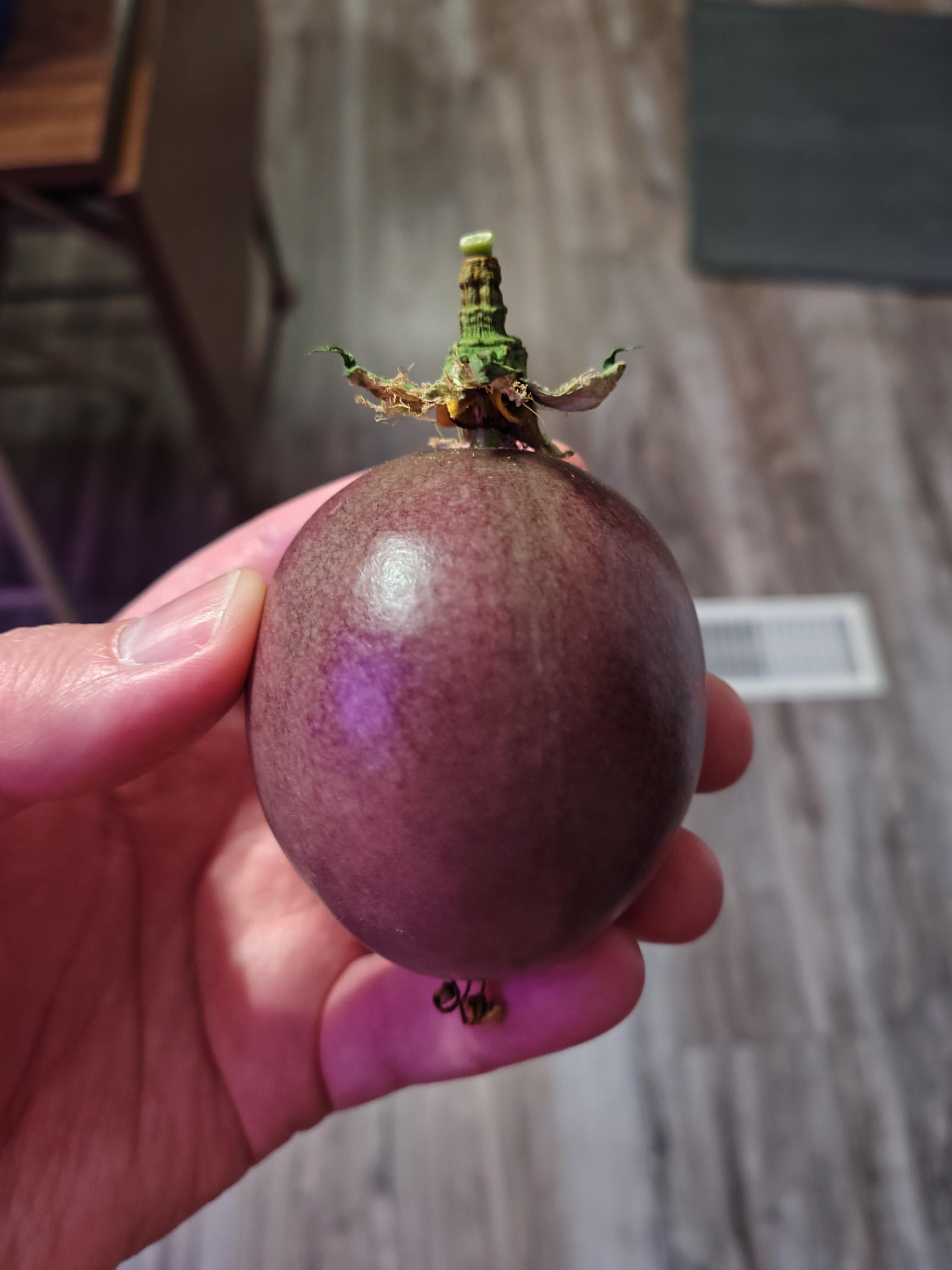 トケイソウ・エデュリス・ポッサム・パープル。今日落ちました。熟してるように見えますか?