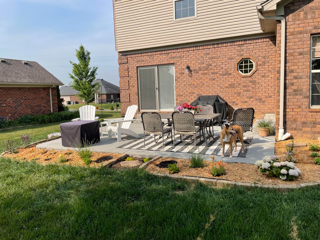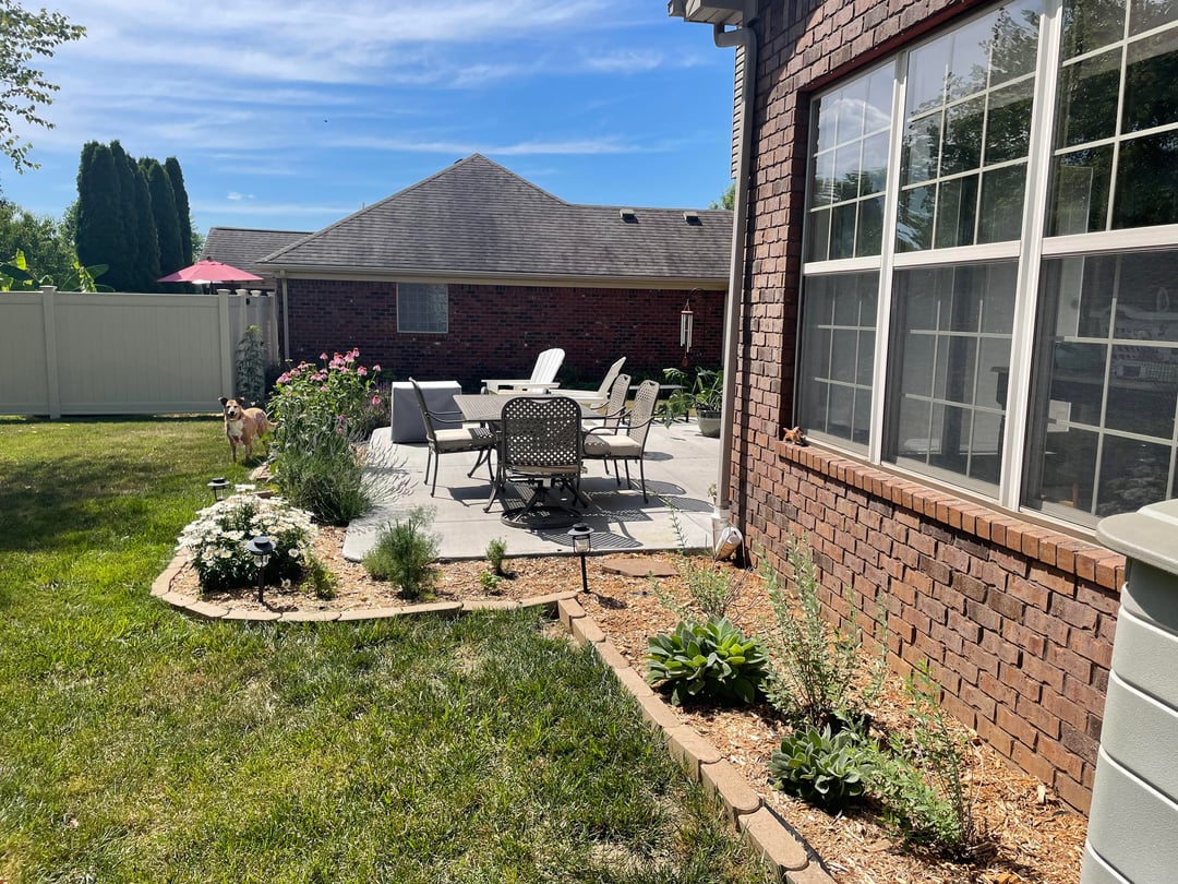 最初の写真は私が注目している部分です。 2番目の2枚の写真は、小道の起点になると思われるパティオ/庭園です。これらは 4 年前のものです。今では庭はさらに充実しています。