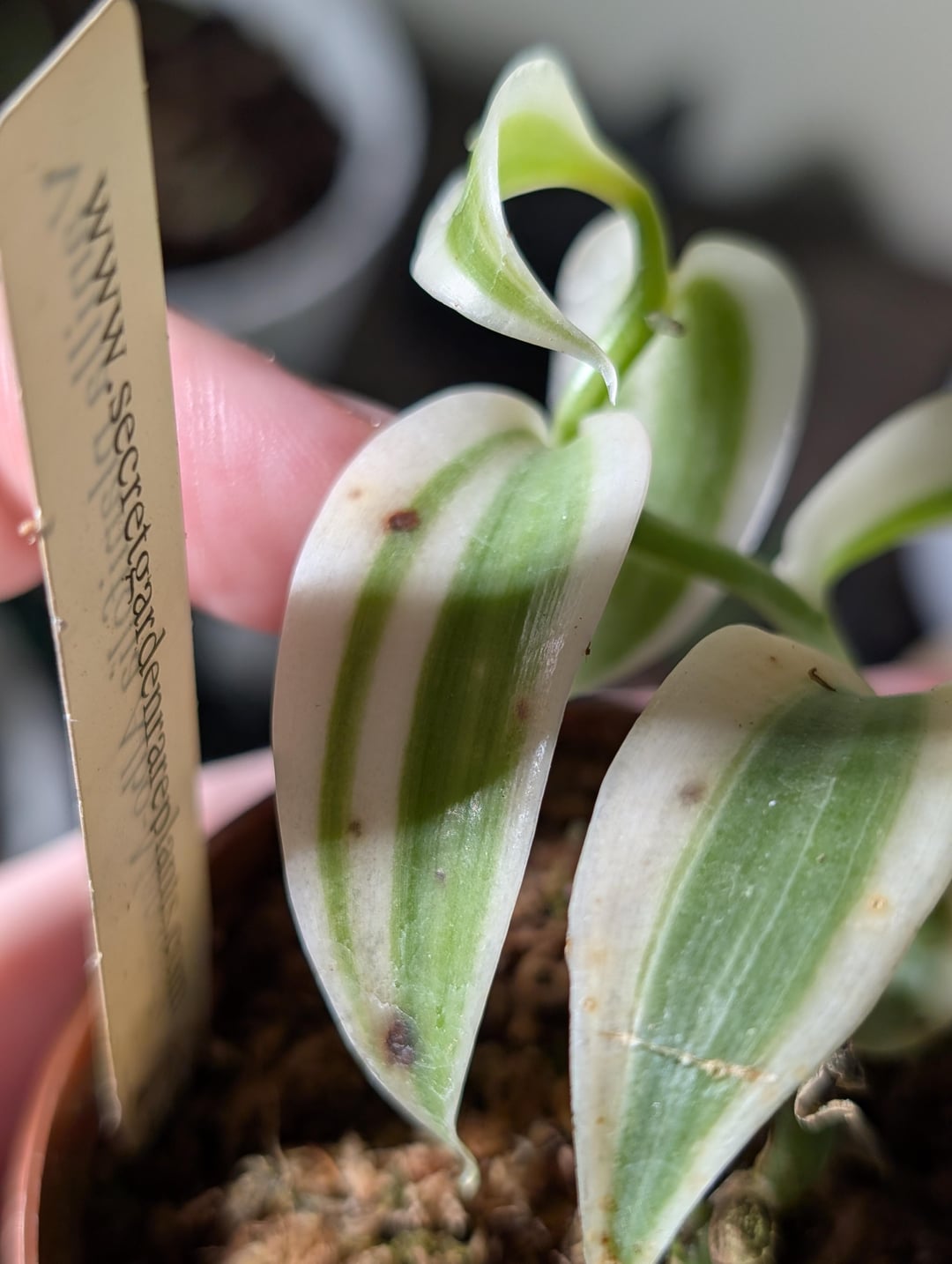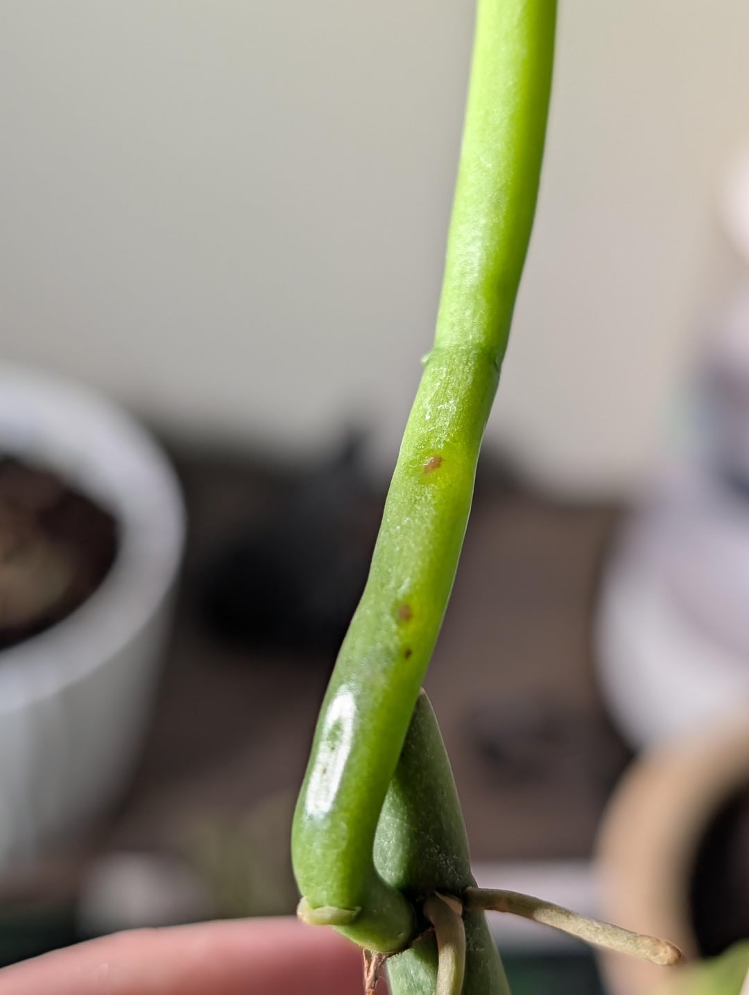 最近蘭(斑入りの V. planifolia と V. aphylla)を注文しましたが、今日これらの茶色の斑点に気づきました。それらは私が過去に見た鱗とまったく同じようには見えません、斑点はあまり対称的/円形ではありませんが、確かなことはわかりません。