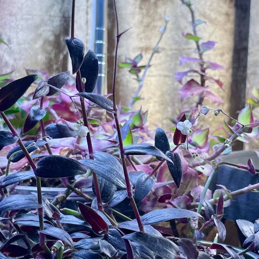 とても小さいので写真を撮るのが難しいです!私のテーブルにはムラサキツユクサ(そしてパトスが数本とカリシア・レペンスが1本)がいっぱいありますが、ダーク・ディザイアは間違いなく私のお気に入りの1つで、何週間もこの花を私に与えてくれていると言わざるを得ません。私は彼らにとても満足しています!