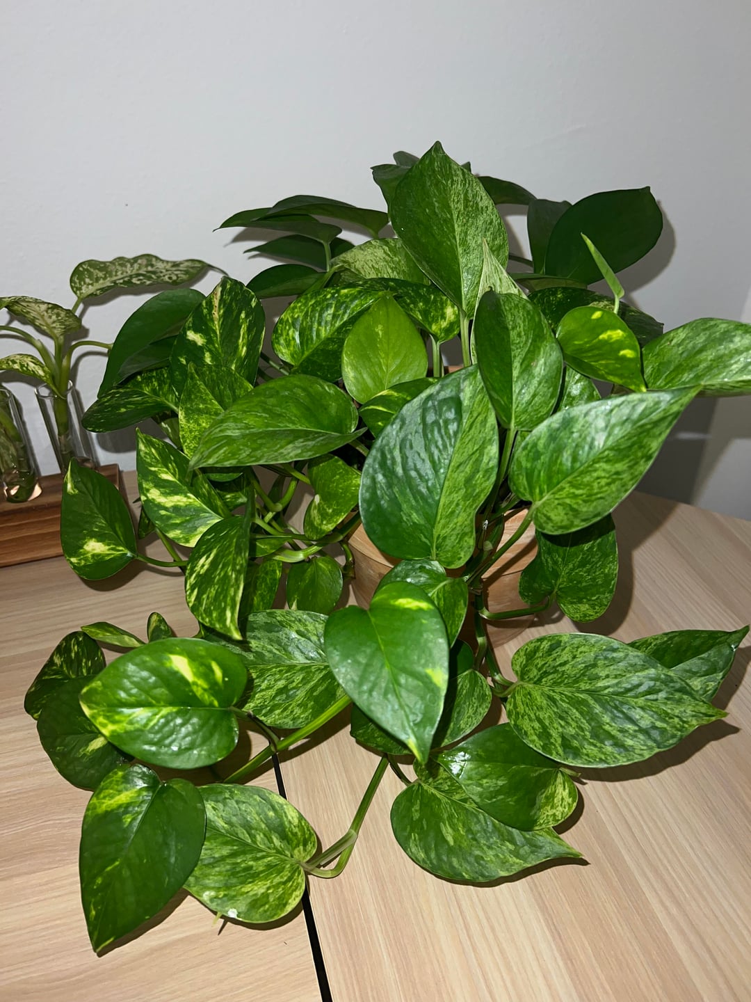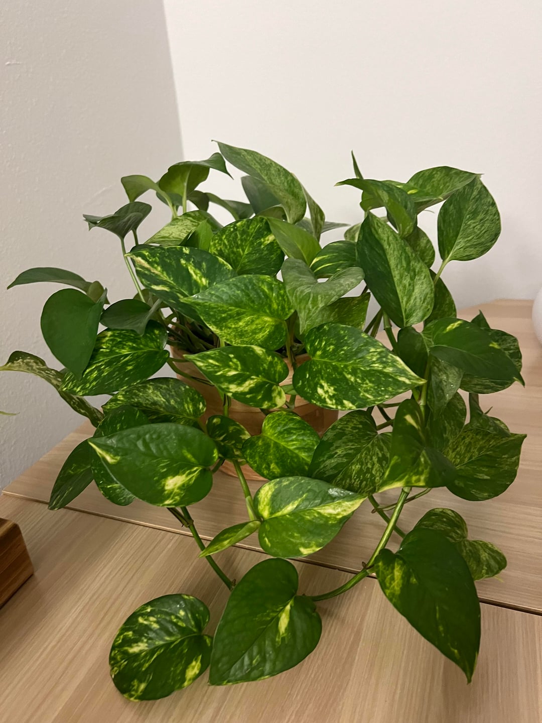 このポトスは2022年の9月に贈られたのですが、残念ながら2023年の夏、とても暑く晴れた日(引っ越し中)にうっかりシモンを車の中に置き忘れてしまい、戻ってきた時には葉が完全に枯れていてショックを受けていました。彼は私にとって初めての植物でした。結局私は彼を看護して健康を取り戻し、約3年後にここにいます!!それ以来、私は植物についてたくさんのことを学び、肥料についても学びました。それ以来、サイモンは葉をたくさん茂らせるようになりました。