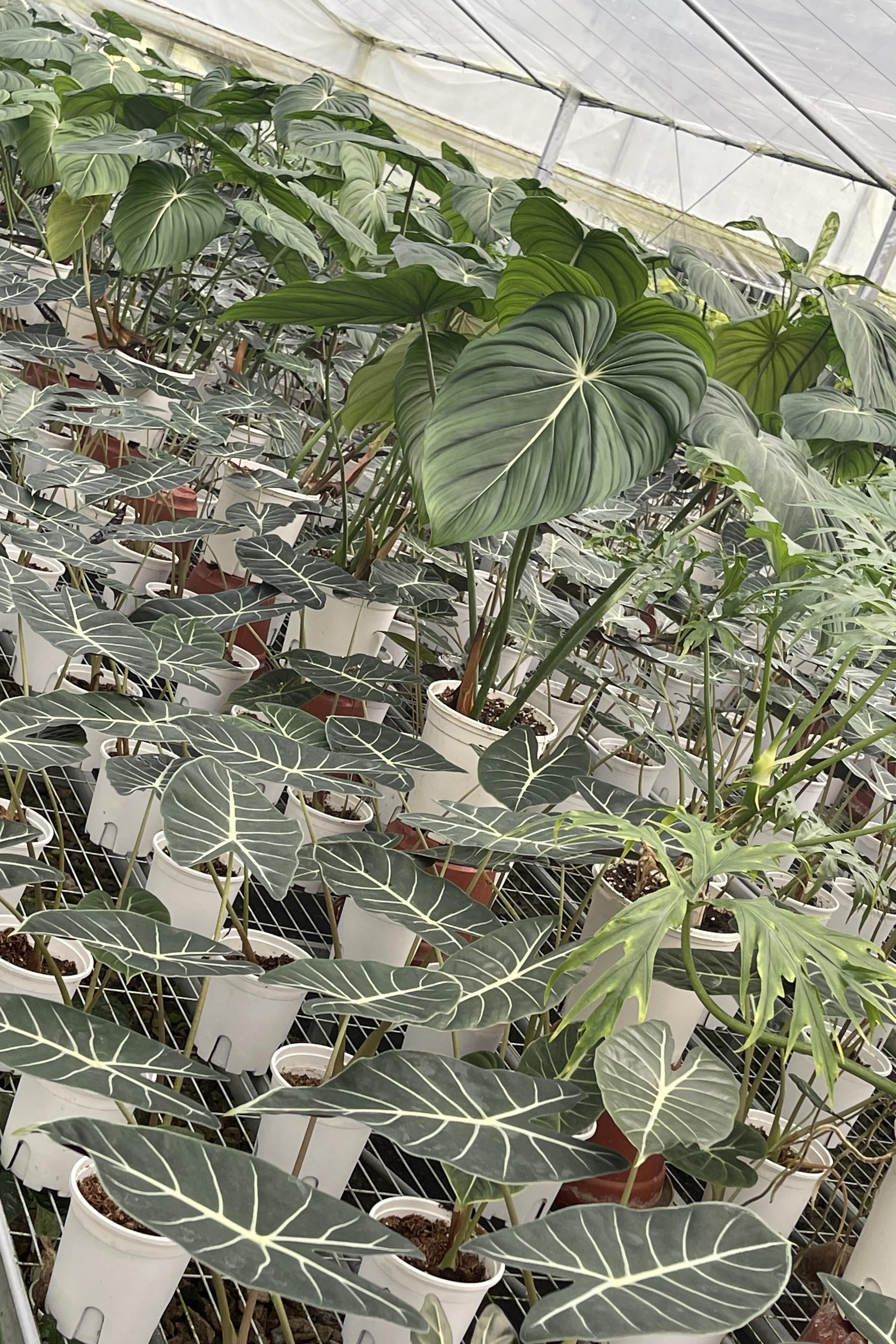 私たちの温室セクションの 1 つからの舞台裏の写真を簡単に共有します。これらは主にクワズイモ(濃い白い葉脈のある濃い葉)と、私たちが商業供給のために栽培している他のアロイドです。 私たちは次のことに重点を置いています。 きれいな生育環境 安定した葉形と色 問題を軽減するための間隔/空気の流れ 植物の長距離輸送の準備 アロイドを大規模に扱っている人がいたら、梱包や輸送のストレスをどのように管理しているかぜひ聞きたいです。