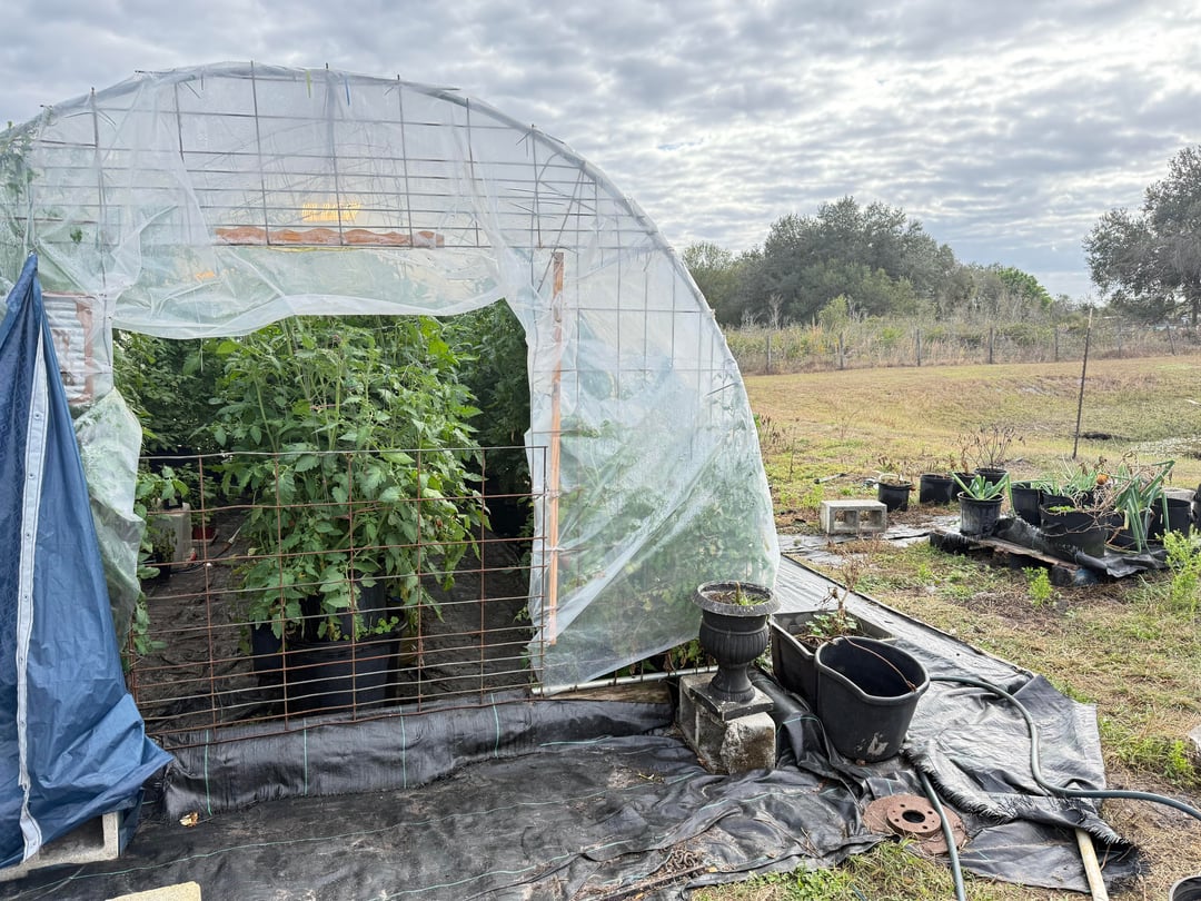 私の20×10フィートのトマトケージは、端をシートで覆い、プラスチックの100ワットの照明2つと小さなスペースヒーターで、フロリダ中央部で30年代に数晩過ごしました。温室のすべてが素晴らしかったです!でも外では、うちのヘビ植物も食べてしまった:( タマネギと、コラードグリーンがまだ走っているだけだ
