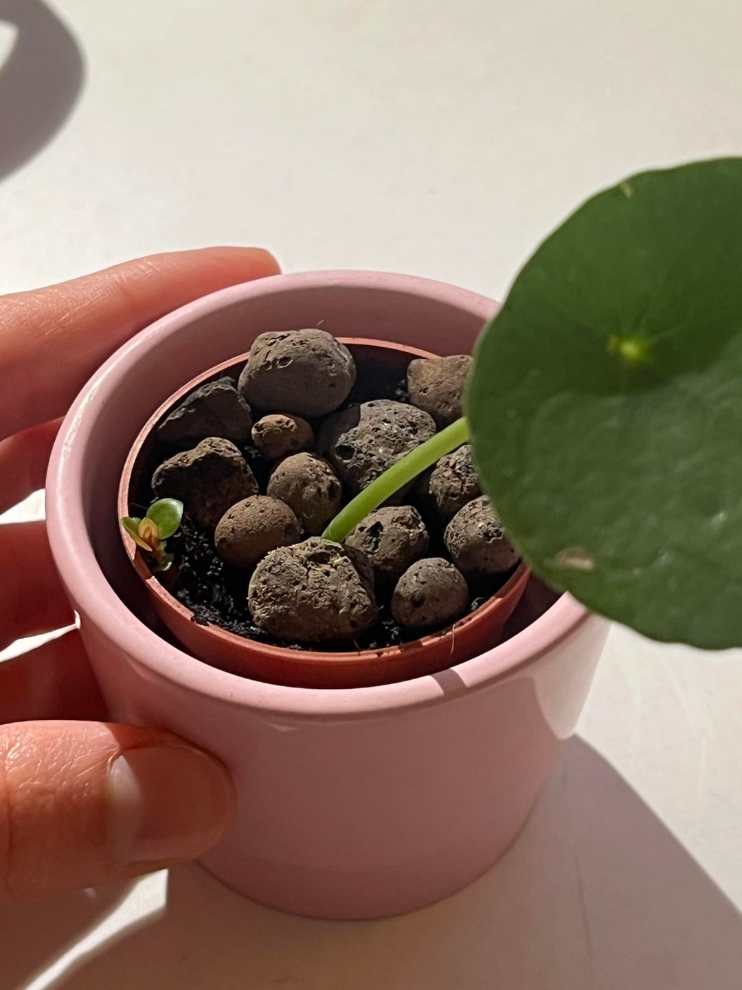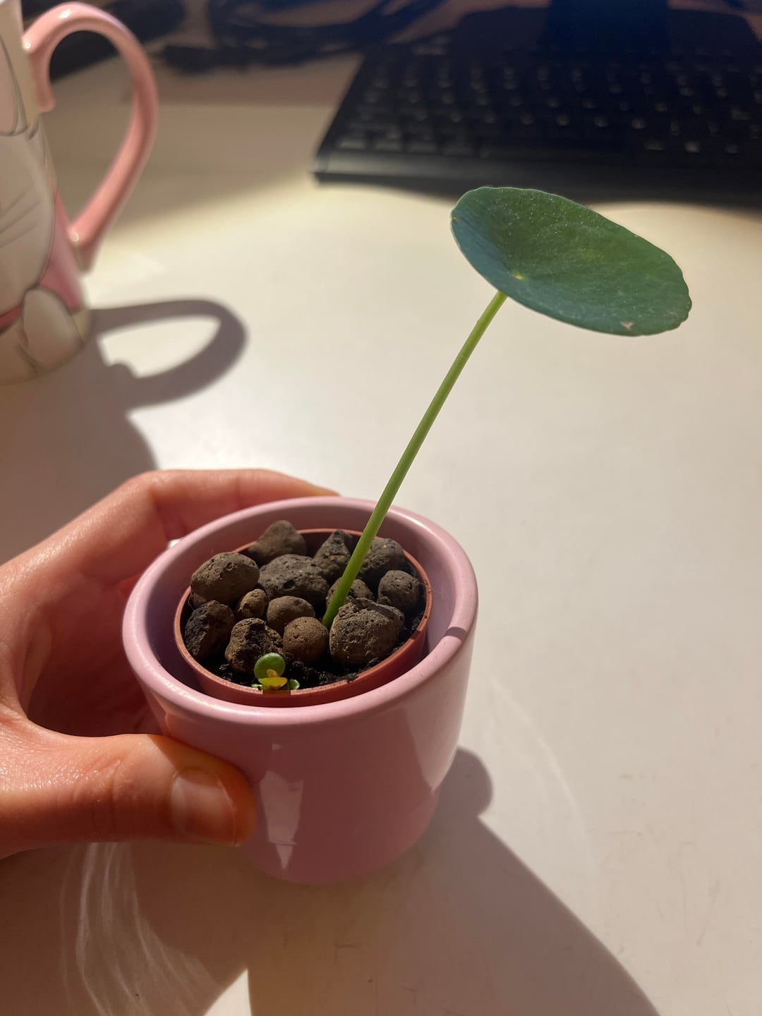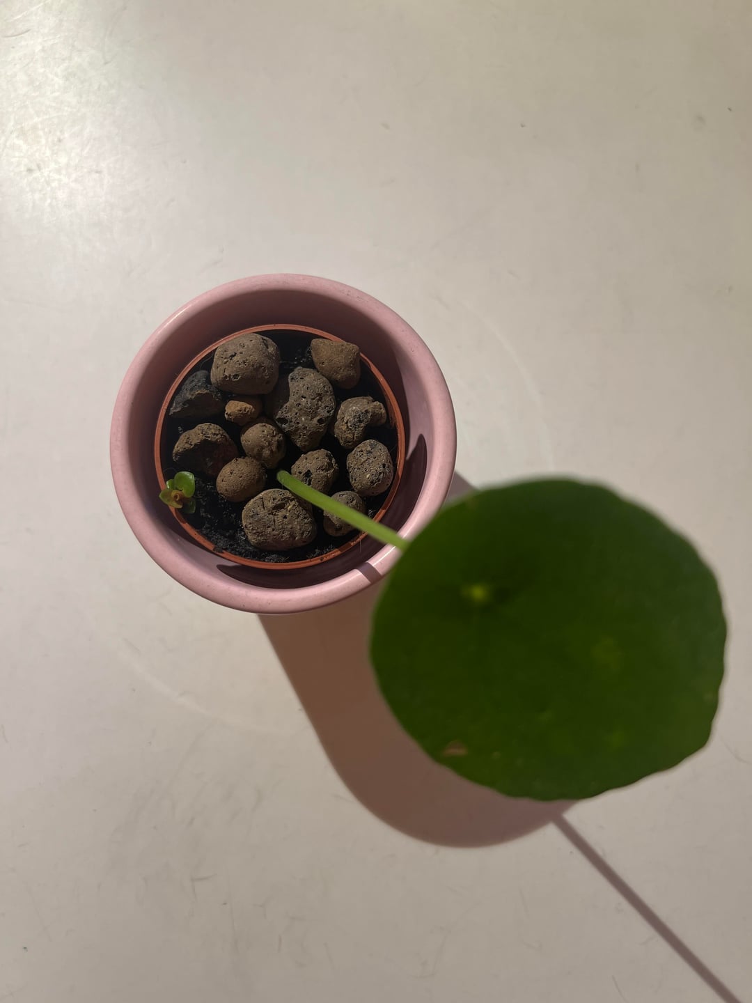 私はピレアの 1 枚の葉を繁殖させましたが、最初はそれが生き残るか、1 枚の葉を超えて成長するかどうかわかりませんでした。そして今、これが現れました。小さな可愛い鉢の中で育っていくのを見るのがとても楽しみです。