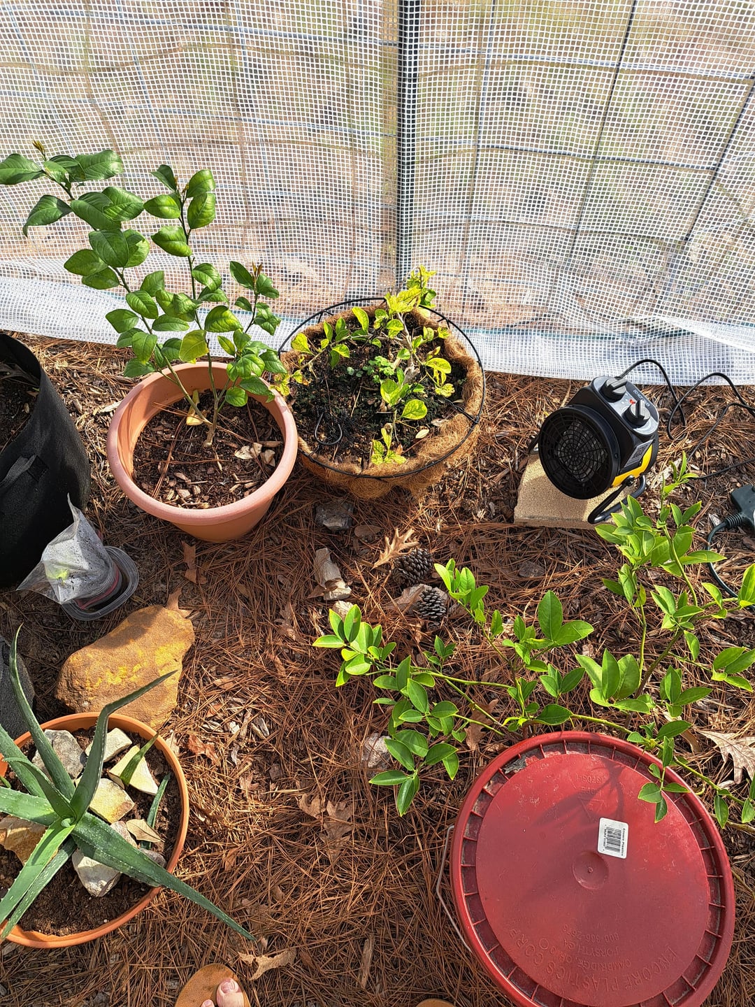 1 月 17 日は、私のテキサス州ゾーン 9a/8b エリアでの最初の本格的な凍結予測です。鉢植えの柑橘類やさまざまな花を家に持ち込むのに飽きたので、4×8のポップアップ温室と小さな温室ヒーターを購入しました。何が起こるか見てみましょう。