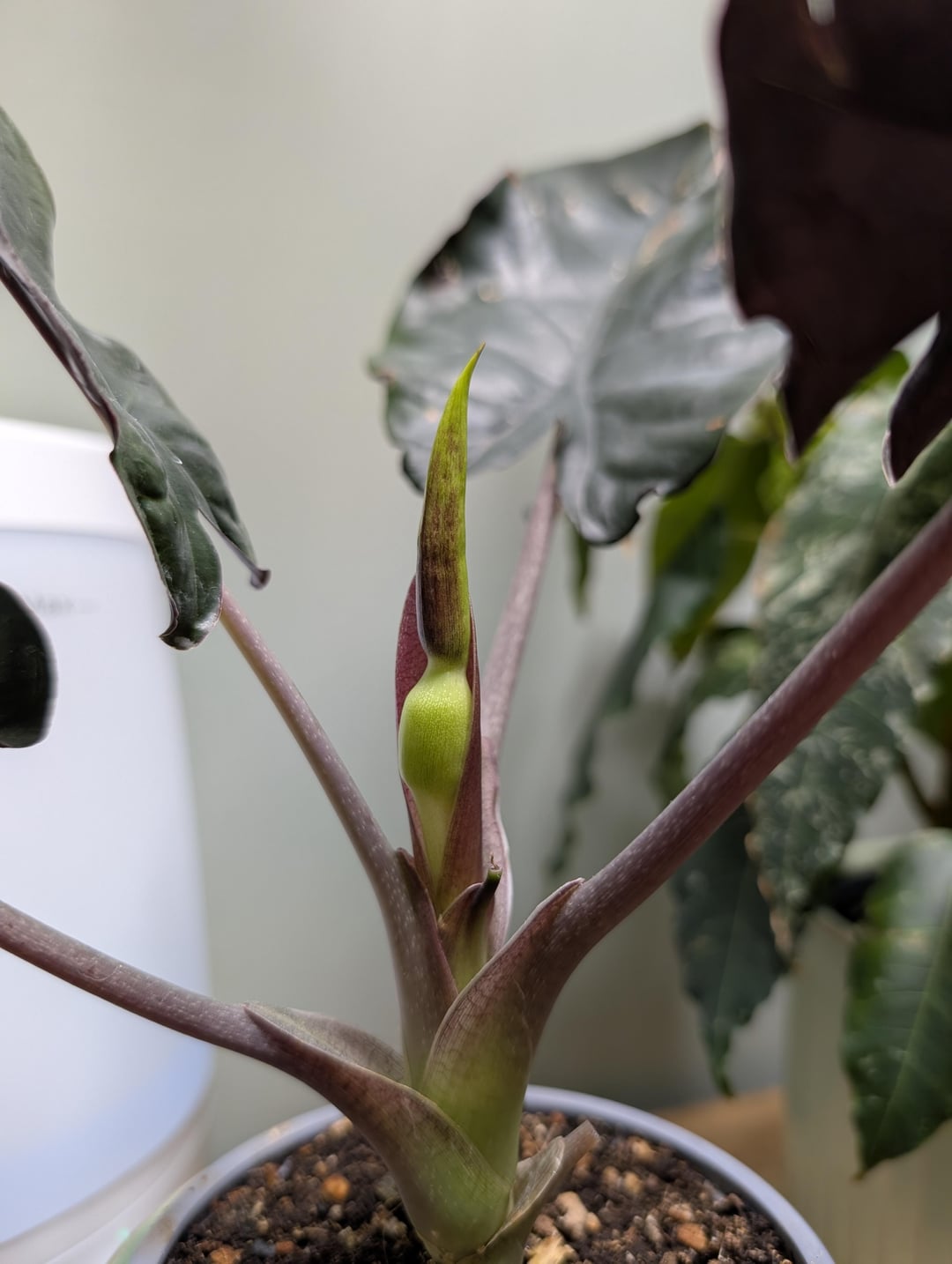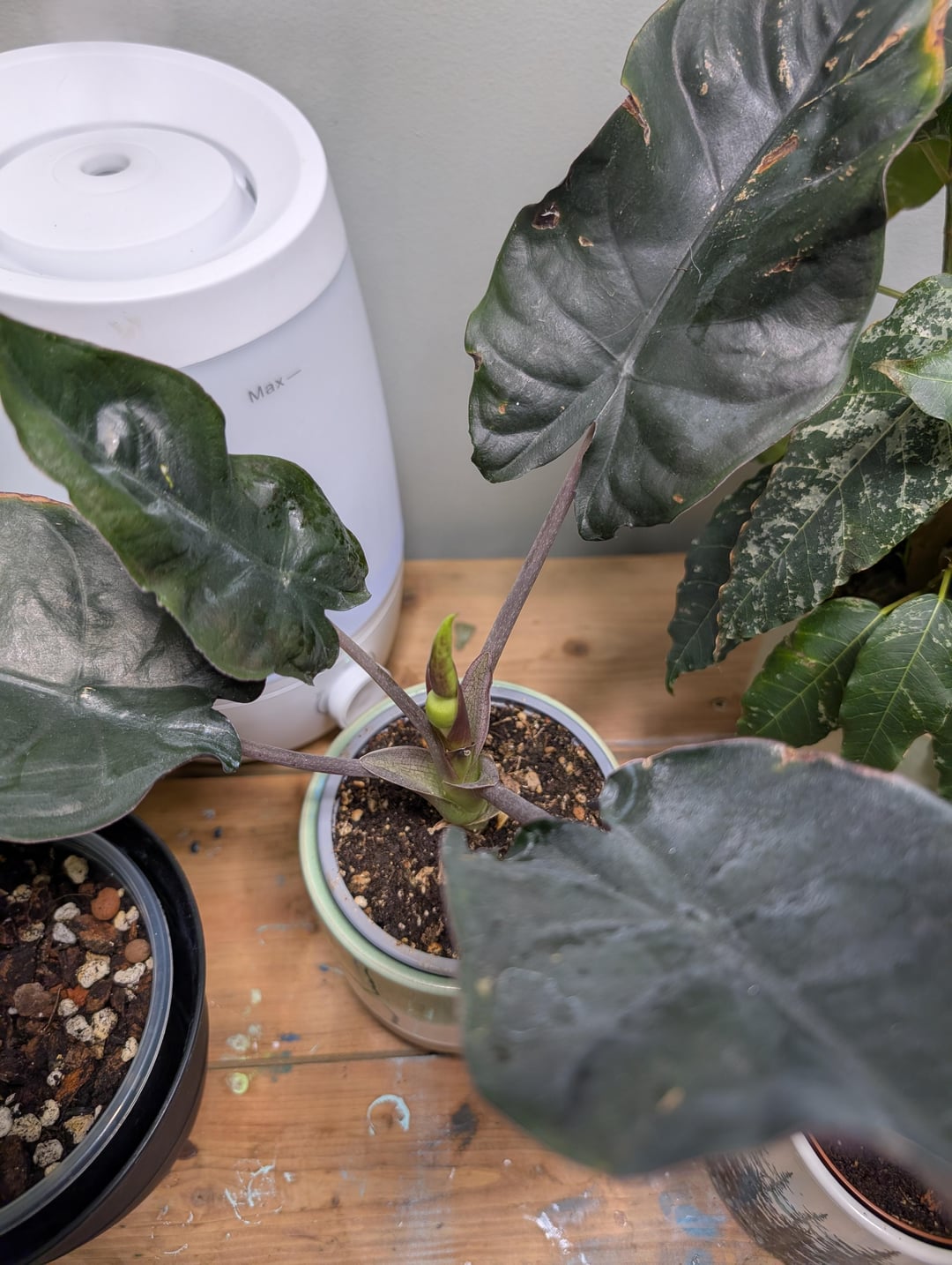 このブラックマジックを約3か月前に保育園から家に持ち帰りましたが、小さなベビーリーフを2枚落としただけで、まだ新しい葉が出ていません。まだ4中だよ" 苗床ポット。上の葉は成長途中で止まっていて、少し反っているように見えます。植物の花を育てたことがない!驚くことではありません。
