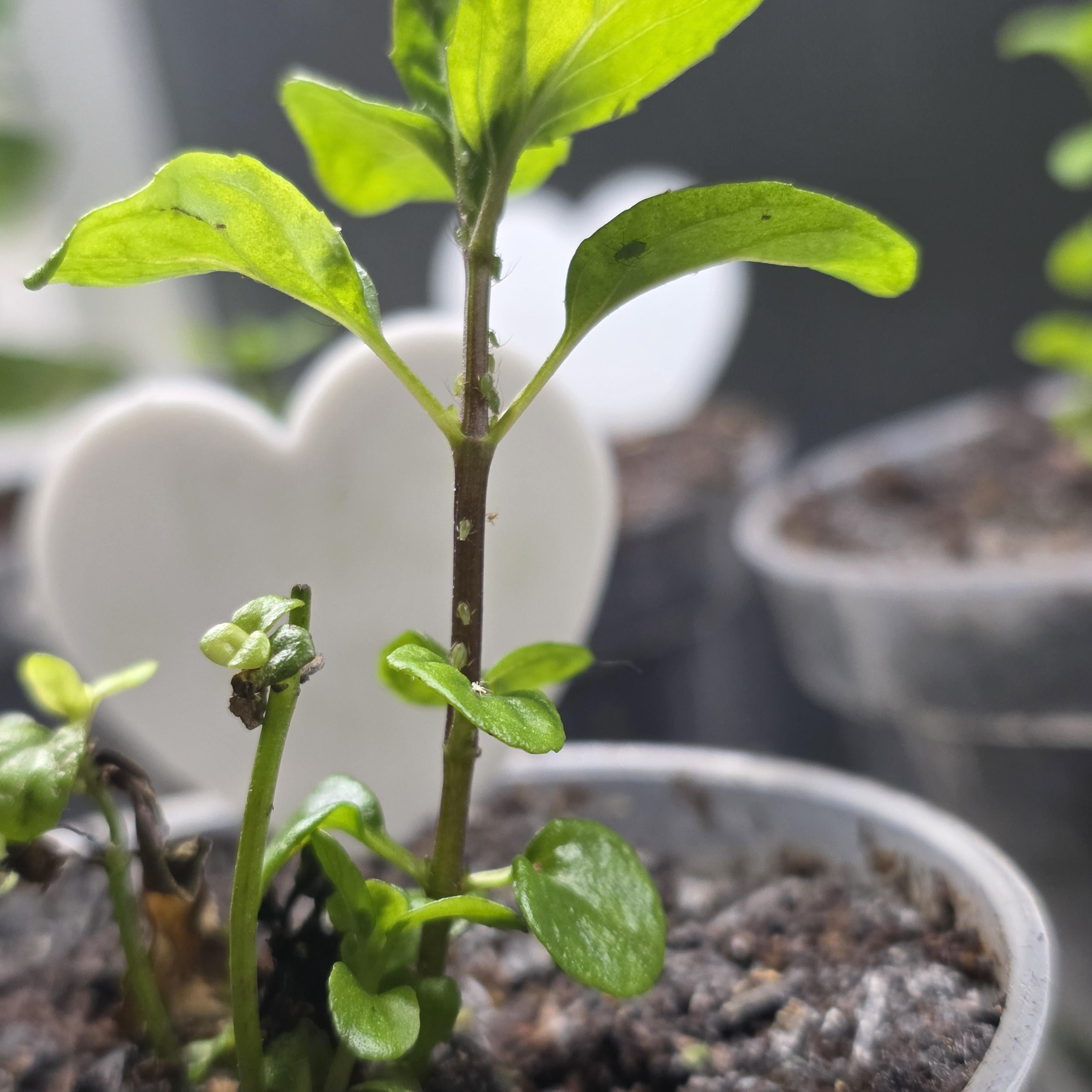 😡😡 アブラムシの敵には必ず勝利します!!どの植物が彼らを持ち込んだのかは分かりませんが、私のバジルは盗まれたかもしれません…しかし、彼らは私のミントを決して盗むことはありません!!! 私は歯ブラシと91%のアルコールを使って殺しています。彼らはニームオイルで治療します。ニームオイルで土壌を処理します。そして、さらに多くの敵がいないか毎日チェックするつもりです。 これまでのところ、彼らはマタタビ、ペストバジル、そして 3 つに対して勝利を収めています。紫のバジル。