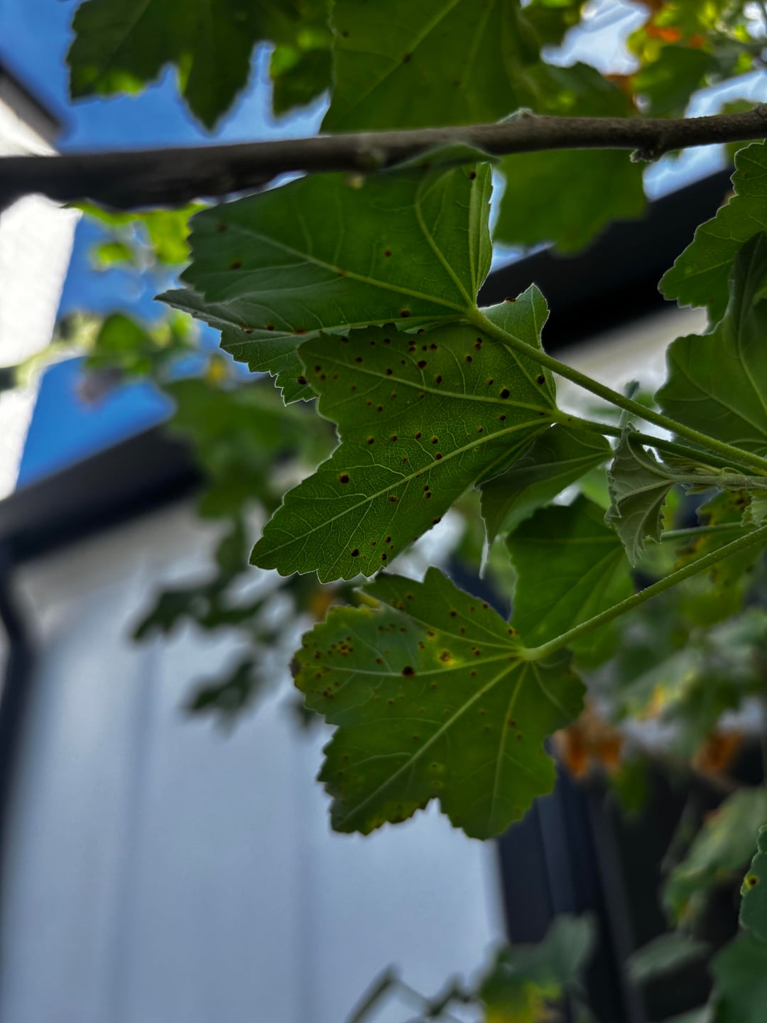うちにはラバテラ・マルティマの植物がいくつかありますが、最近葉に奇妙な突起や斑点ができ始めました。これは何か考えられますか?目立った害虫は見当たりませんが、葉っぱに何かが食いついているような気がします。