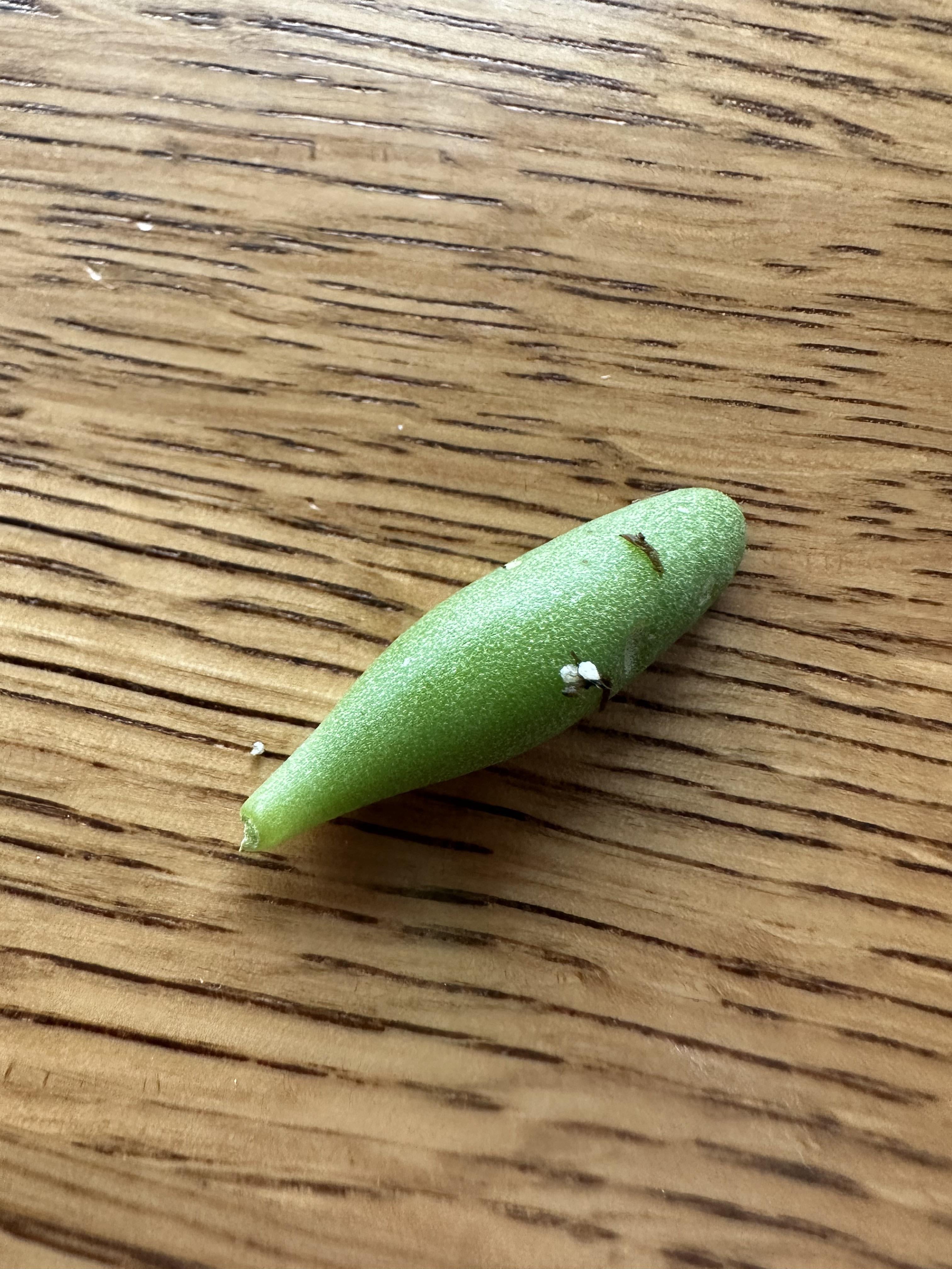 今日、地元の苗床に何かを買いに行ったところ、いくつかの鉢の中に一連の真珠の品種(どれかわかりません。知っている場合は、lmk!)のこの葉を見つけました。繁殖のために葉を保存しているかどうか作業員に尋ね、そうでない場合は試してもらうことにしました。葉は捨ててしまうので、これは持って帰りました。
